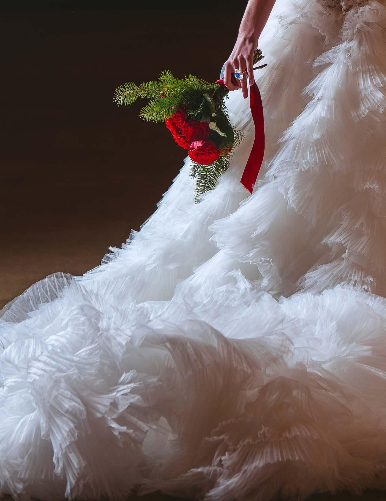 As the seasons shift, summer brings a sense of warmth and freedom, where the bride embraces crisp whites and the breezy elegance of lace. A beachside feeling with flowing dresses and natural, sun-kissed styling, while subtle details like delicate pearls or a loose, windswept hairstyles reinforce the season’s effortless beauty. Summer’s brightness contrasts with the cooler tones of autumn, which introduces deeper, earthier shades like rich browns, burnt oranges, and even bold touches of black. This season exudes sophistication and drama, with luxurious fabrics like silk and colorful overlay with striking accessories, allowing the bride to embody both strength and romance.