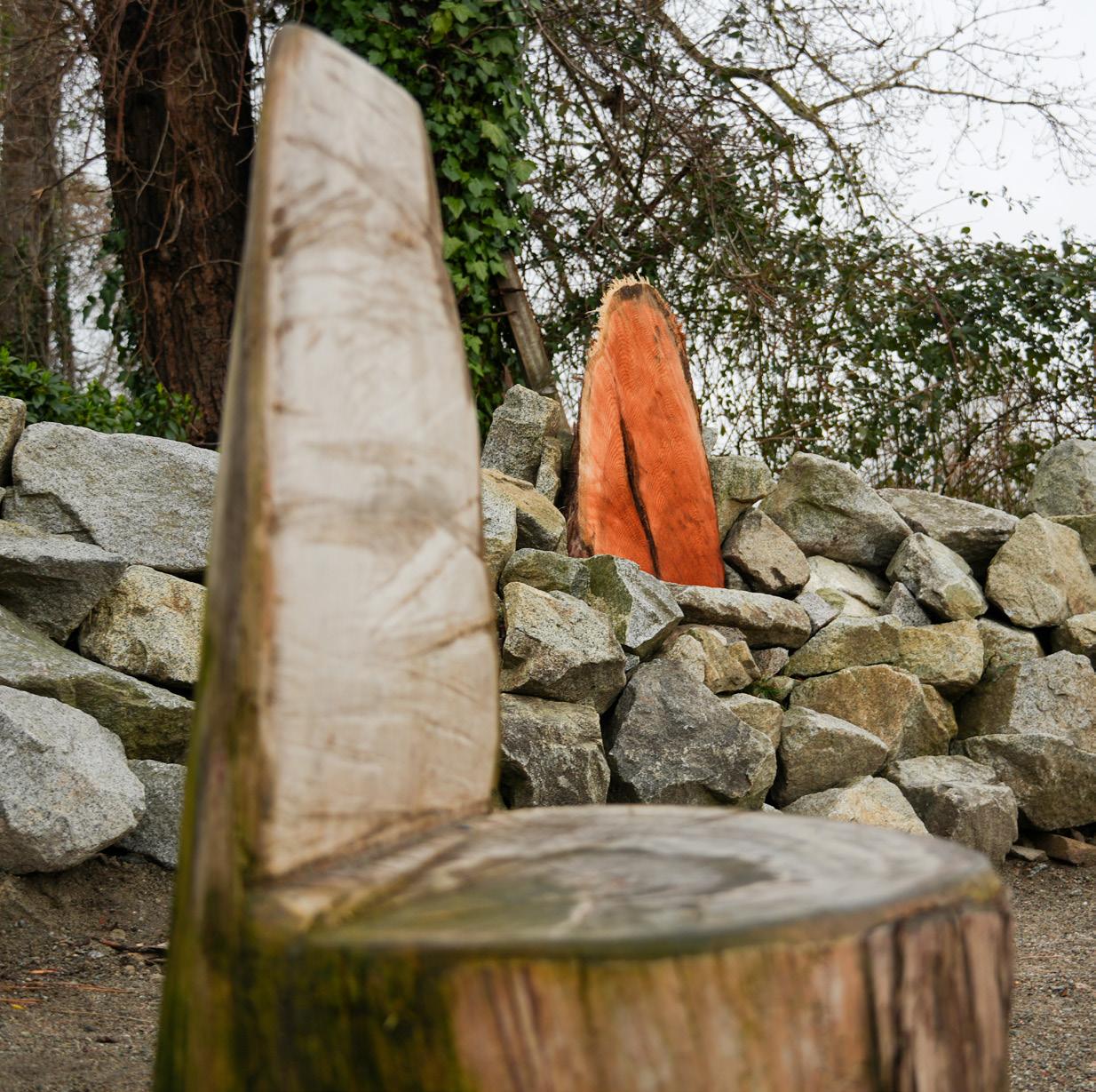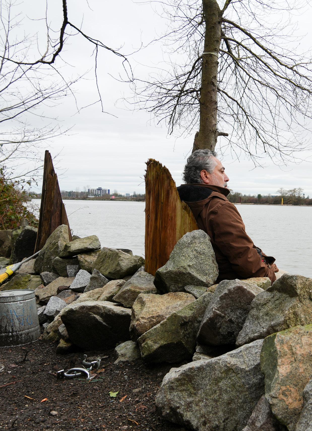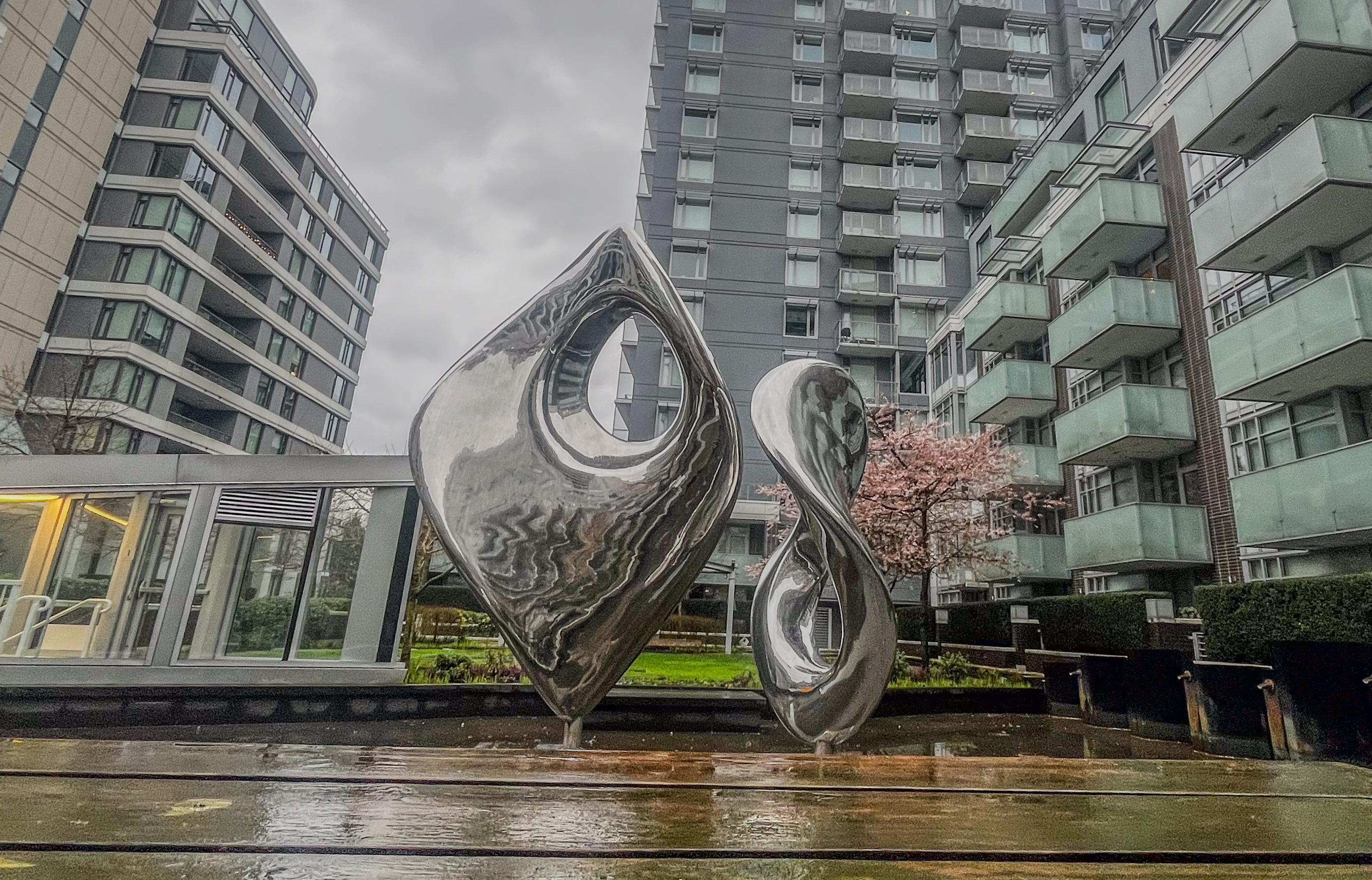 Another piece, Eyes on the Street, is inspired by urban thinker Jane Jacobs and her idea that communities stay safer when people are present and watching. The piece, located near Science World, uses two large eye-like forms to overlook the space, turning that concept into something visual and immediate for the public.