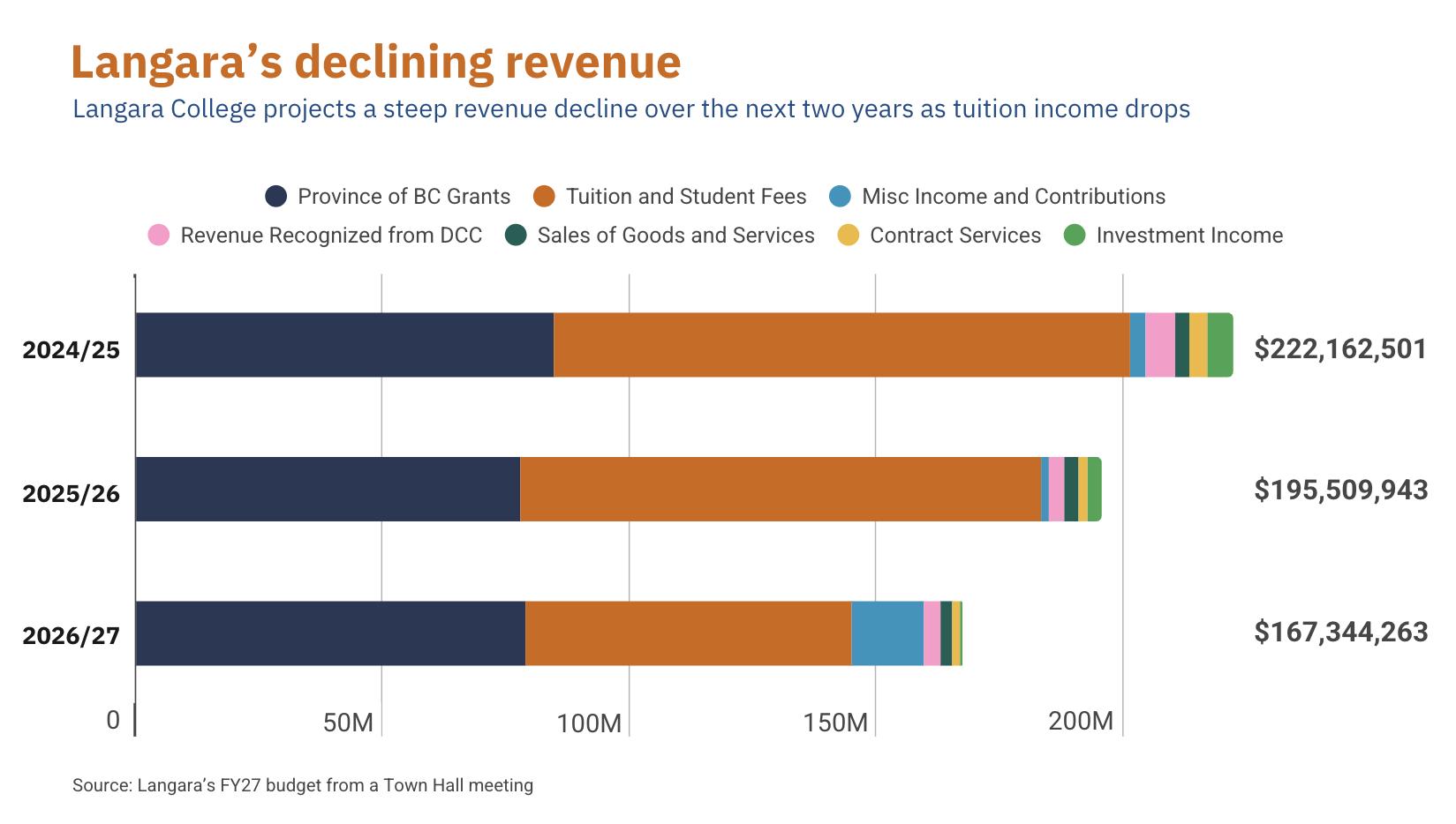 The federal government’s recent limits on international student study permits have reduced enrolment and revenue for many of B.C.’s postsecondary institutions. Langara’s projected deficit has doubled from $16 million to $32 million in the past six months, and 219 instructors have been laid off.