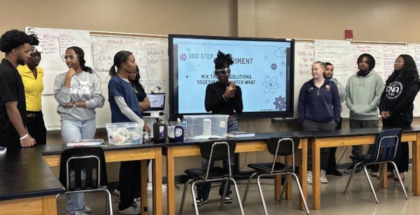 Langston University General Chemistry I students develop and deliver interactive chemistry demonstrations to local high school students, positioning themselves as experts and leaders. During the Fall 2025 semester, more than 25 LU students presented demonstrations at Frederick A. Douglass High School in Oklahoma City on Nov. 11 and 18.