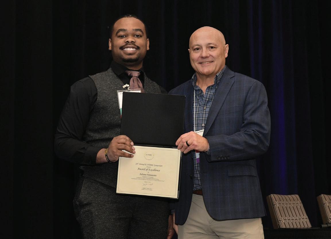 Juliane Simmons, a graduating senior biology major, earned an Award of Excellence for his oral presentation on “Exploring the Connection Between NUAK and 14-3-3zeta in Muscle Tissue.” Justin Berryhill, a junior biology major, earned an Award of Excellence for his poster presentation on “Gait Differences in ASD/Fragile X Rodent Models.”