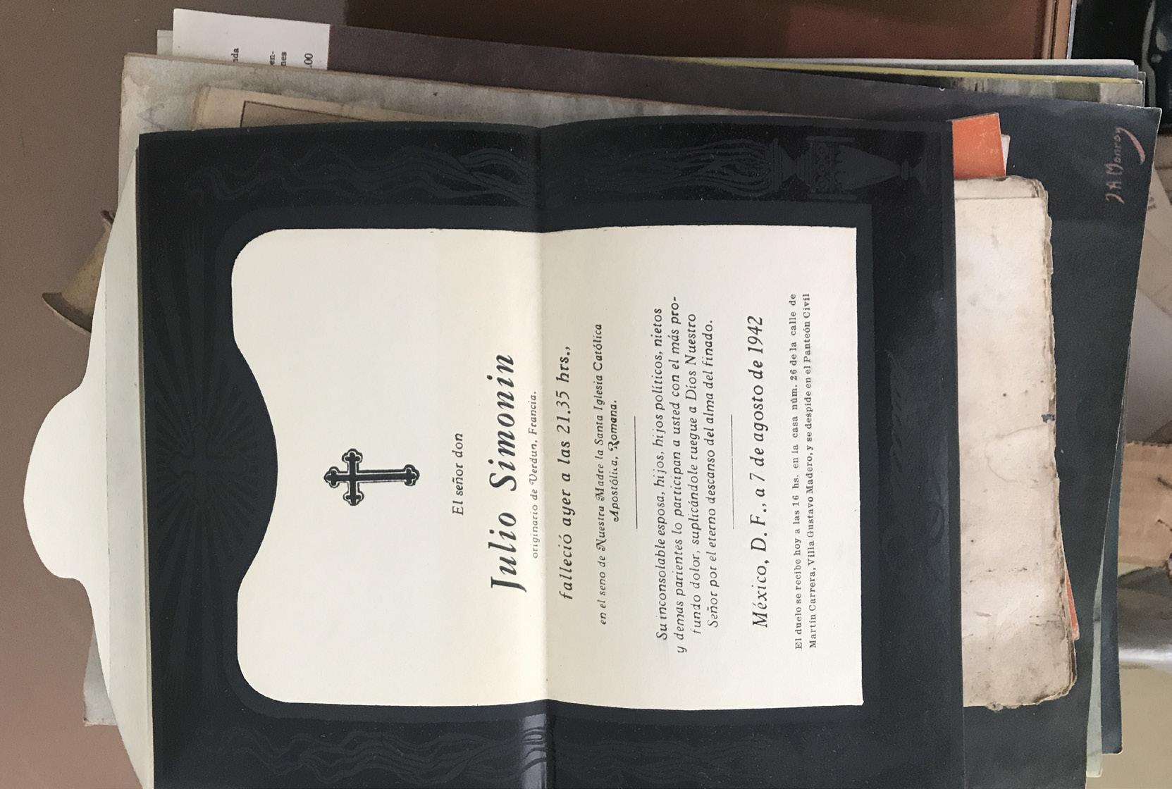 Entre las cosas que me llevé también había objetos de su madre, una maestra normalista de perfecta caligrafía; también de su padre, homeópata que fabricaba pomadas, cremas de belleza y hasta pastas de dientes con su apellido francés: Simonin. Mi tía Lupita, bióloga de profesión, también se dedica a las medicinas alternativas. Judith guardó amorosamente los objetos que pertenecieron a sus padres, los libros de medicina, frascos, matraces, estufas para química, incluso frascos con aceites aromáticos y mucho polvo de aluminio.