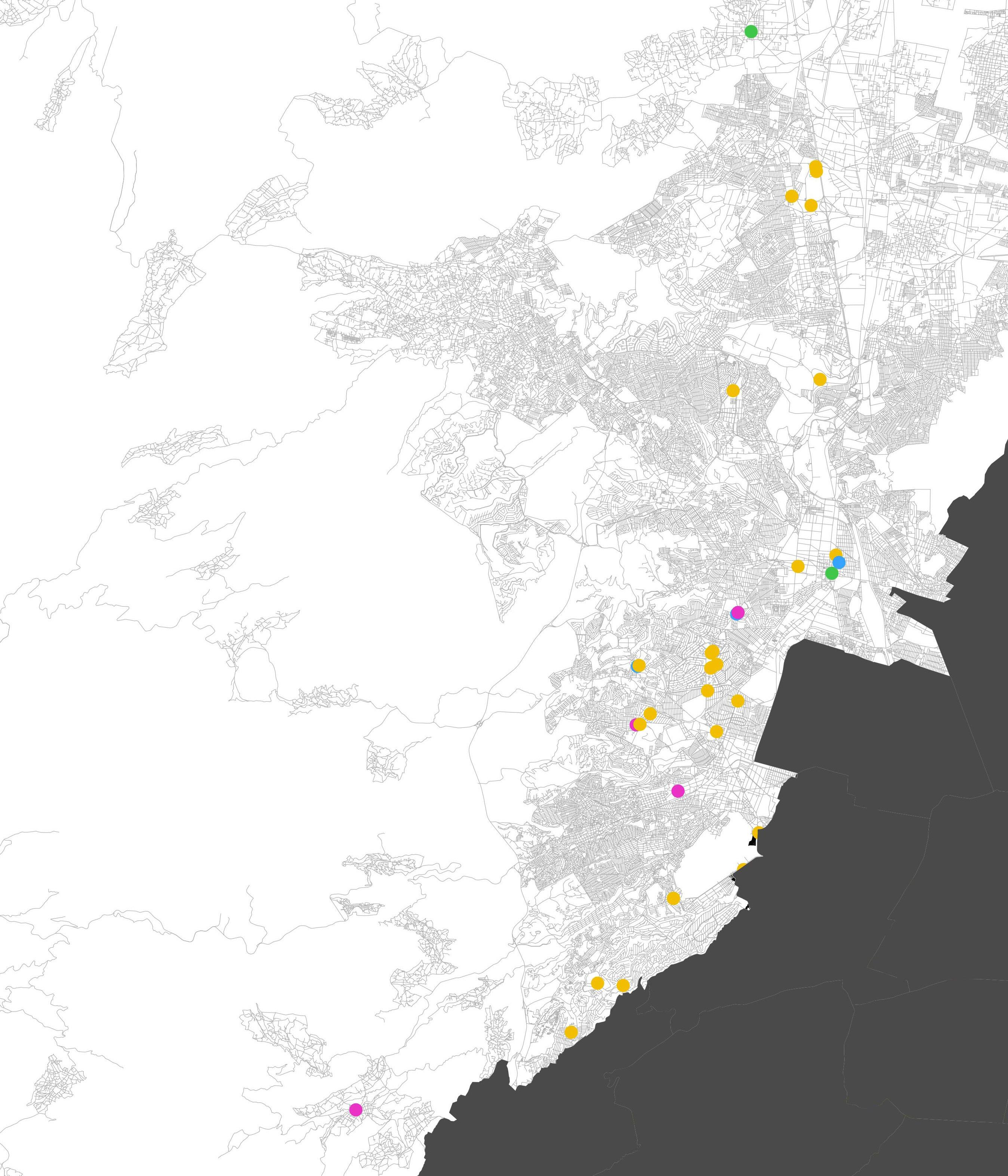 Esta serie de mapas responden a la pregunta de cómo se distribuyen estos espacios a lo largo del territorio, cuál es su relación con el desarrollo económico de cada localidad y qué pistas sugieren sobre la oferta cultural de las ciudades. Su realización tomó como punto de partida la revisión de la base de datos abiertos del Sistema de Información Cultural del Gobierno de México, que dista mucho de ser una fuente precisa. De las 1476 librerías registradas, 1038 no cuentan con coordenadas para su geolocalización, tienen en su registro librerías que ya no existen y no están otras que tienen varios años de funcionamiento. A pesar de estos defectos, estos mapas muestran una generalidad analizable. Si bien es deseable que las bases de datos ligadas al desarrollo cultural de las ciudades se mejoren afinando y precisando sus datos, estos registros ya bastan para establecer una visualización de las librerías en relación con su territorio y población.