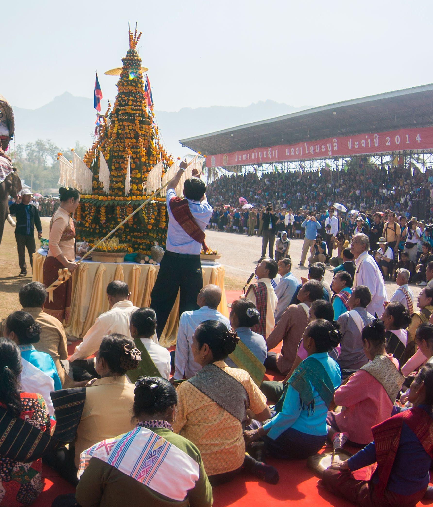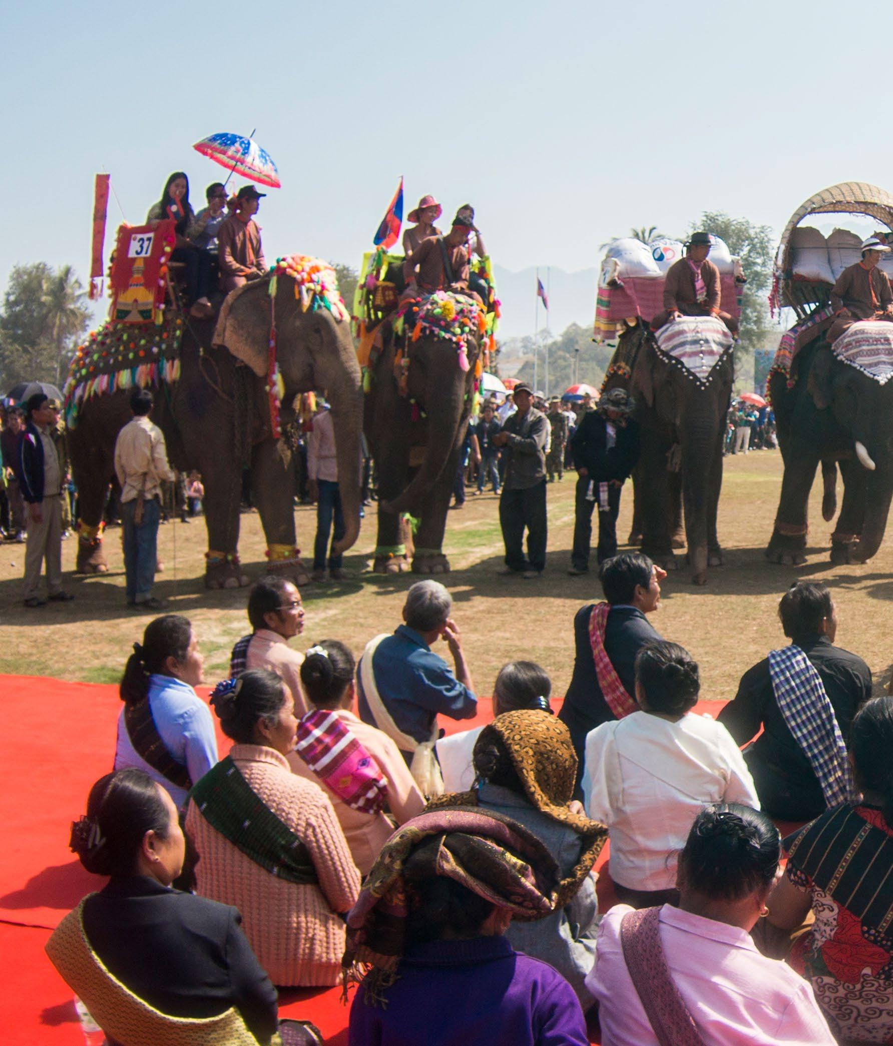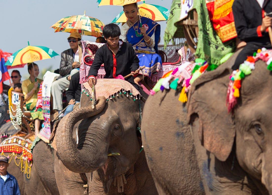 During the festival, dozens of elephants are paraded, feted, and then honored with a traditional Lao baci ceremony where holy strings are tied around their legs. It’s well worth a visit as this is the only time you can see so many elephants all at once!