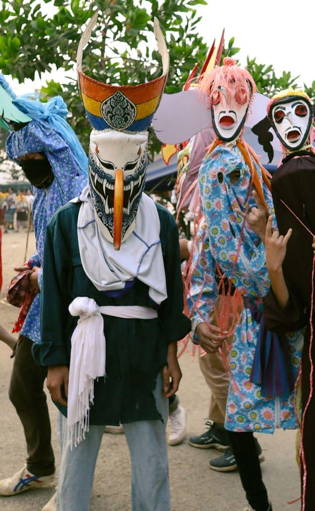 The ghost masks reflect ancestral imagination, featuring large heads, long noses, tongues, and ears, paired with common clothing similar to what was worn during the original procession to the city gates. Historically, the ghost teachers would write messages of love on the ears of young men and women before a special tradition involving crafting wooden masks in fields and gardens before bringing them to the procession. While this specific custom no longer exists, people can still create and wear masks, though they must do so without disrespecting others. This ghost procession remains an essential annual tradition, passed down through generations to foster contentment, creativity, and solidarity among the people of Paklay district.