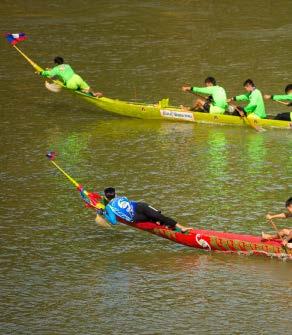 The tournament is staged on the Khan River in Luang Prabang halfway through Buddhist Lent (this year it is on September 2nd) with onlookers crowding both banks. Miss New Year and Lao dignitaries watch the races from a magnificent pavilion at the finish line and award prizes to the winning teams.