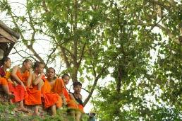 Novices watch the boat races at Wat Siphoutthabat