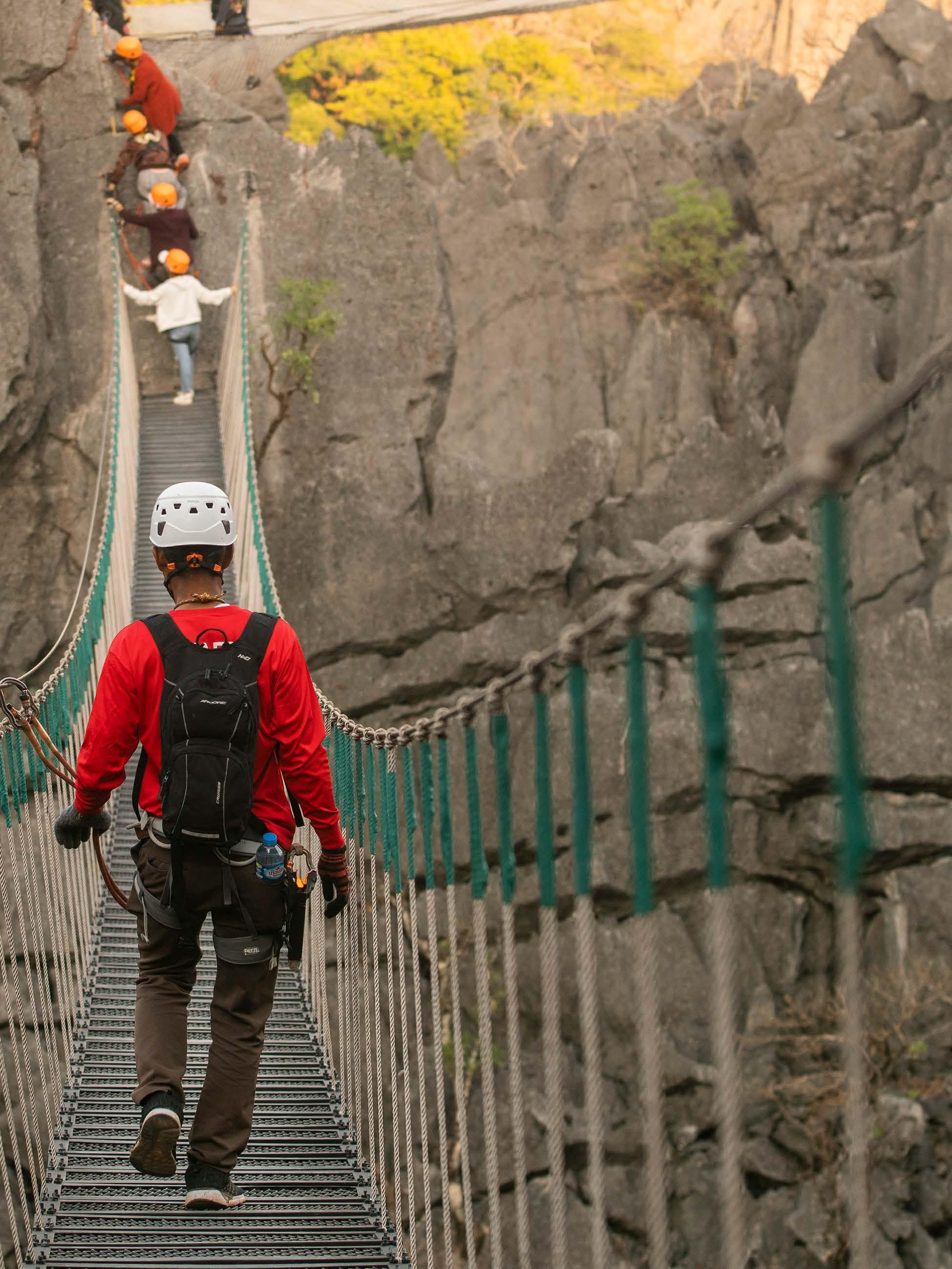Suspension bridge at The Rock Viewpoint at Phou Pha Man, Khammouane Province