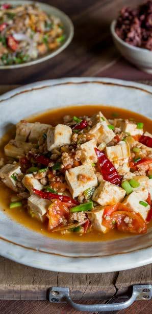Wandering the steep cobbled streets of Phongsaly town’s old quarter, lined with single-storey wooden shophouses and red lanterns, you could be forgiven for thinking you are in southern China. In fact, many of the people in this part of town are Haw Chinese, descendants of traders from Yunnan, which borders Laos, a little further north. Evidence that the migrants have kept their distinctive culinary culture alive is everywhere. Chinese-style pork sausage, and a local speciality of pork, tofu, and Sichuan pepper, can be seen hanging out to dry, as can baskets of tofu (including the ominous looking and powerfully flavoured tohu yee, fermented tofu) and discs of fermented soybean cake, a key seasoning in many local dishes. Yunnan cuisine can be found at several open-fronted shophouse restaurants in town, but one of the best is Laoper. Typical of oldschool Chinese restaurants, there’s no