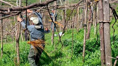anni e dopo una passeggiata fra queste viti patriarca – dicono Raffaele e Valentina Tagliafierro – fa emozionare chiunque. Anche noi che le proponiamo”. Qui è ancora attivo qualche vecchio cestaio che costruisce le sue opere con i polloni dei castagni. La magia e l’arte dell’intreccio. Ecco, Tramonti è un intreccio di valori. E’ la dimostrazione del vecchio assunto: il turismo balneare in Costiera Amalfitana è un equivoco. Non esisterebbe senza il lavoro e la resilienza di chi lavora la terra e, proteggendo questo territorio, bellissimo e fragile nel contempo, trasmette saperi che non tramonteranno mai. Tanto meno a Tramonti…