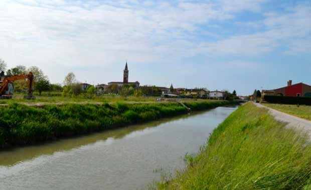della salinità nelle acque superficiali, hanno reso evidente quanto sia urgente intervenire. Il sistema idrico locale si trova oggi sotto una pressione senza precedenti, aggravata anche da anni di progressivo abbassamento della falda e di erosione del suolo. In questo quadro si inserisce il complesso intervento in corso lungo l’Adigetto, il canale che attraversa il territorio adriese e rappresenta uno dei principali snodi idraulici della zona. I lavori di consolidamento degli argini, attualmente in fase avanzata, rientrano in un piano più ampio di messa in sicurezza idraulica che coinvolge enti loca-