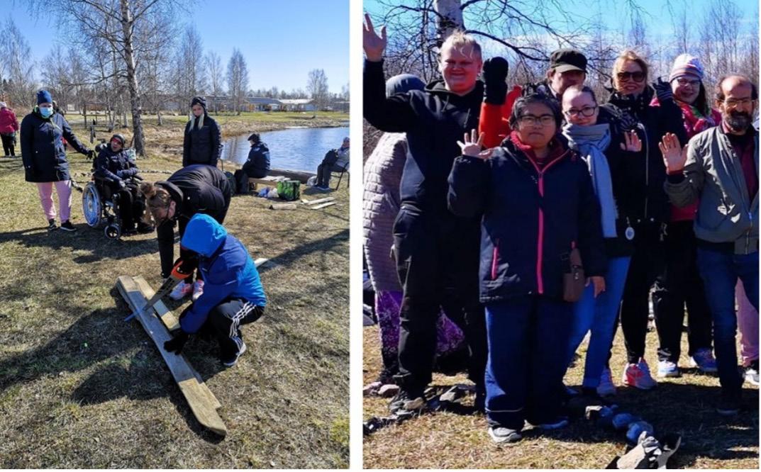 Kuva 8. Saavutettava ja esteetön Katoava puisto ja tekijöitä Pohjantähti-opiston monikulttuurisesta ryhmästä (Kuva: Susanna Kamsula)