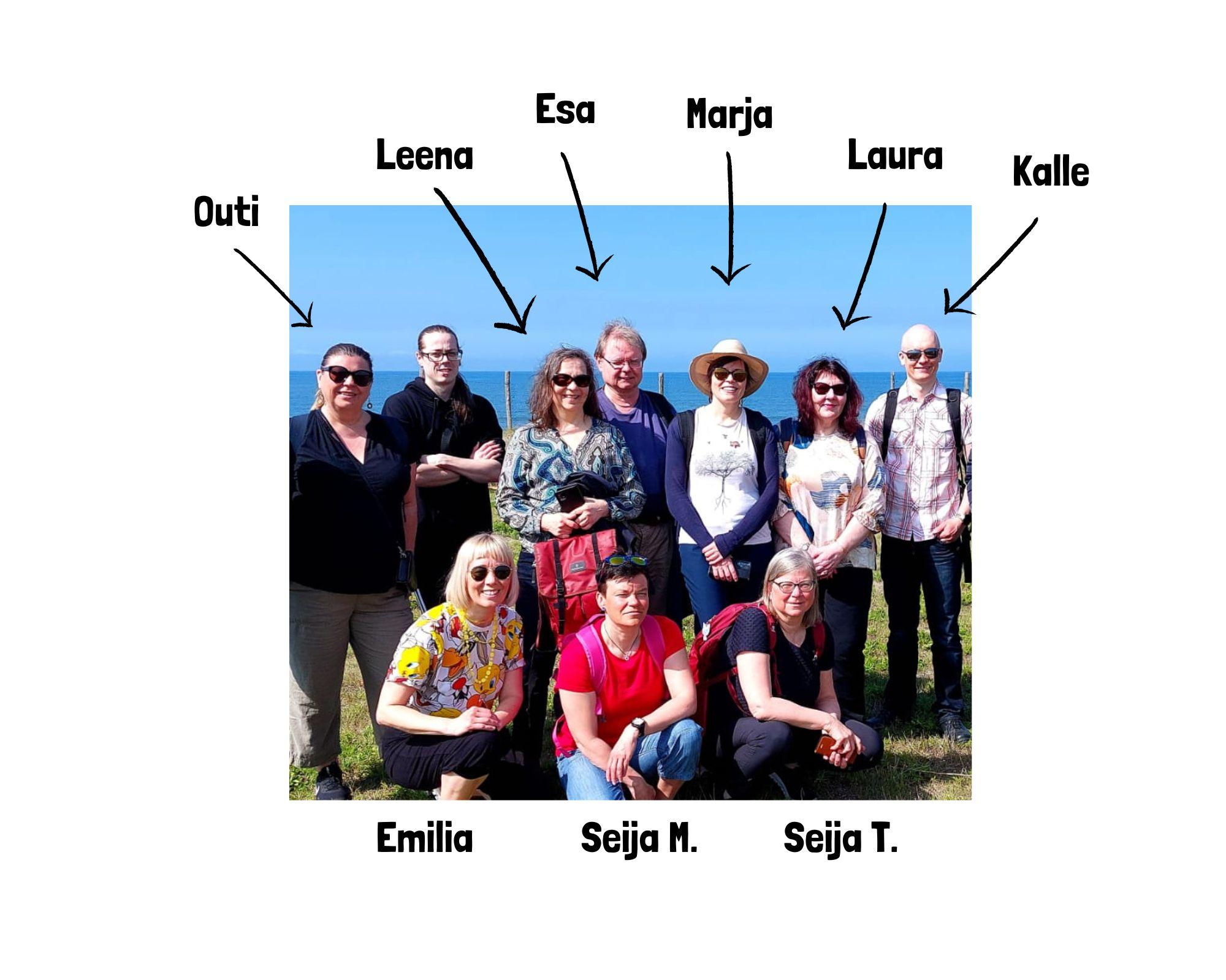 Tähän artikkeleista koostuvaan julkaisuun on sisällytetty tutkimuksellista, teoreettista ja kokemuksellista tietoa. Sitä on yhdistetty KUPO, Kulttuurit yhteisellä polulla – luonto ja osallisuus hyvinvoinnin vahvistajina -hankkeessa kehitettyyn mo nikulttuuriseen luontolähtöiseen valmennukseen, toimintaan ja yhteistyöhön kun toutumisen ja kotoutumisen tueksi. Kirjoittajat ovat KUPO-hankkeessa toimineita asiantuntijoita (kuva 1): erikoistutkija Marja Uusitalo, professori, erikoistutkija Seija Tuulentie ja erikoistutkija Esa Huhta Luonnonvarakeskuksesta, lehtori Leena Seppälä, projektisuunnittelija Kalle Santala ja lehtori Laura Jokela Lapin ammattikorkeakou lusta, rehtori Essi Ojanperä ja projektityöntekijä Emilia Vuori Pohjantähti-opistosta, kehittämispäällikkö Outi Hedemäki-Kantola Meriva sr:sta, vs. pakolaisohjaaja LiisaMaria Tiihonen Tervolan kunnasta ja esimies Seija Matero Rovalan Setlementti ry:stä (MoniNet).