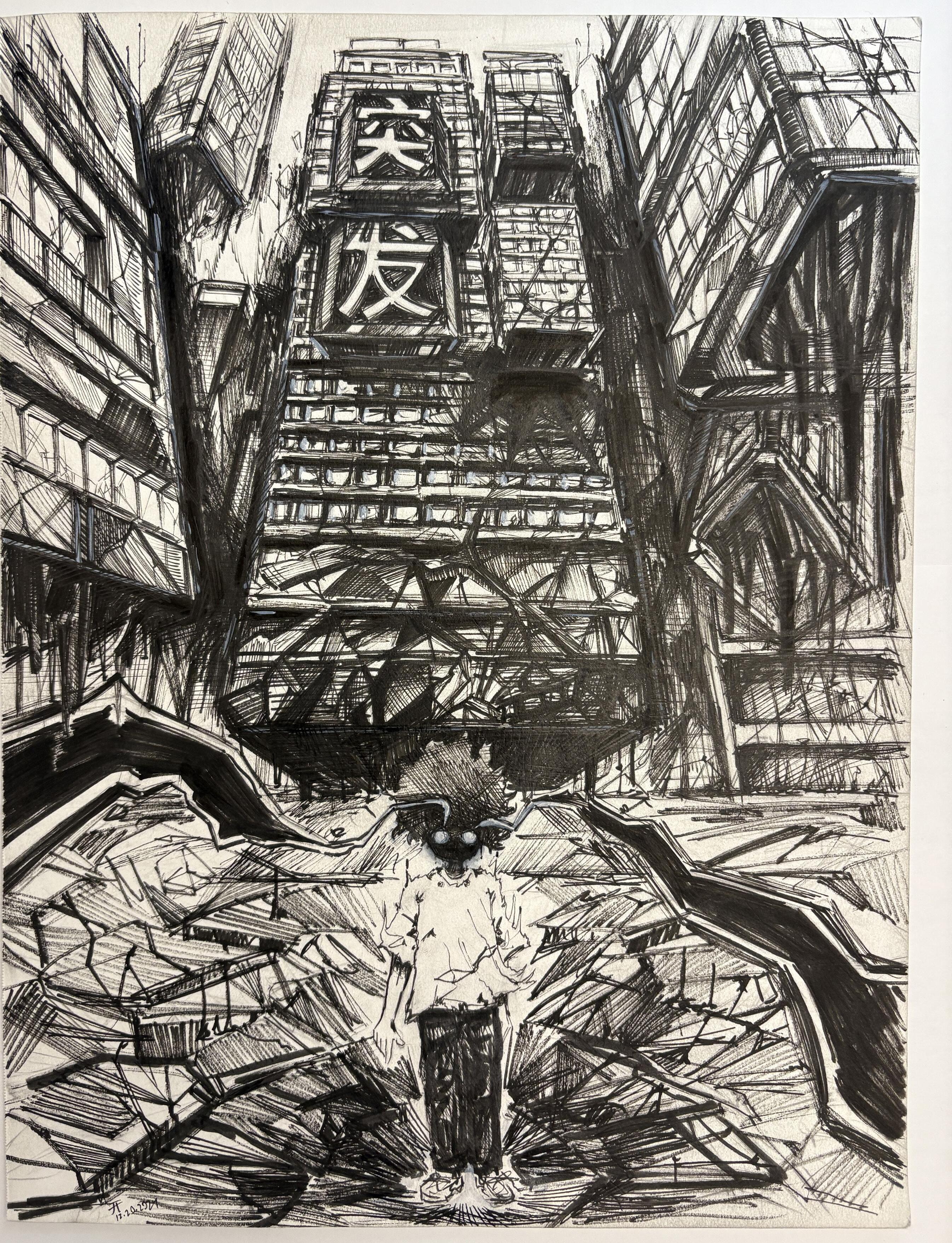 Tere is an electric pole in front of my house. It and I have very little to do with each other, except for the nights when I imagine it’ll come crashing down some day. Tose nights, I undergo a kind of gory metamorphosis. Can you see it? Skin tears to reveal glistening, sinewy red muscle; organs distend, limbs arch, cells morph into splintered exoskeleton; bones of honeycomb and nougat are exposed. Te electric pole will fall, and we will all be lit on fre. Perhaps, then, I will sleep.