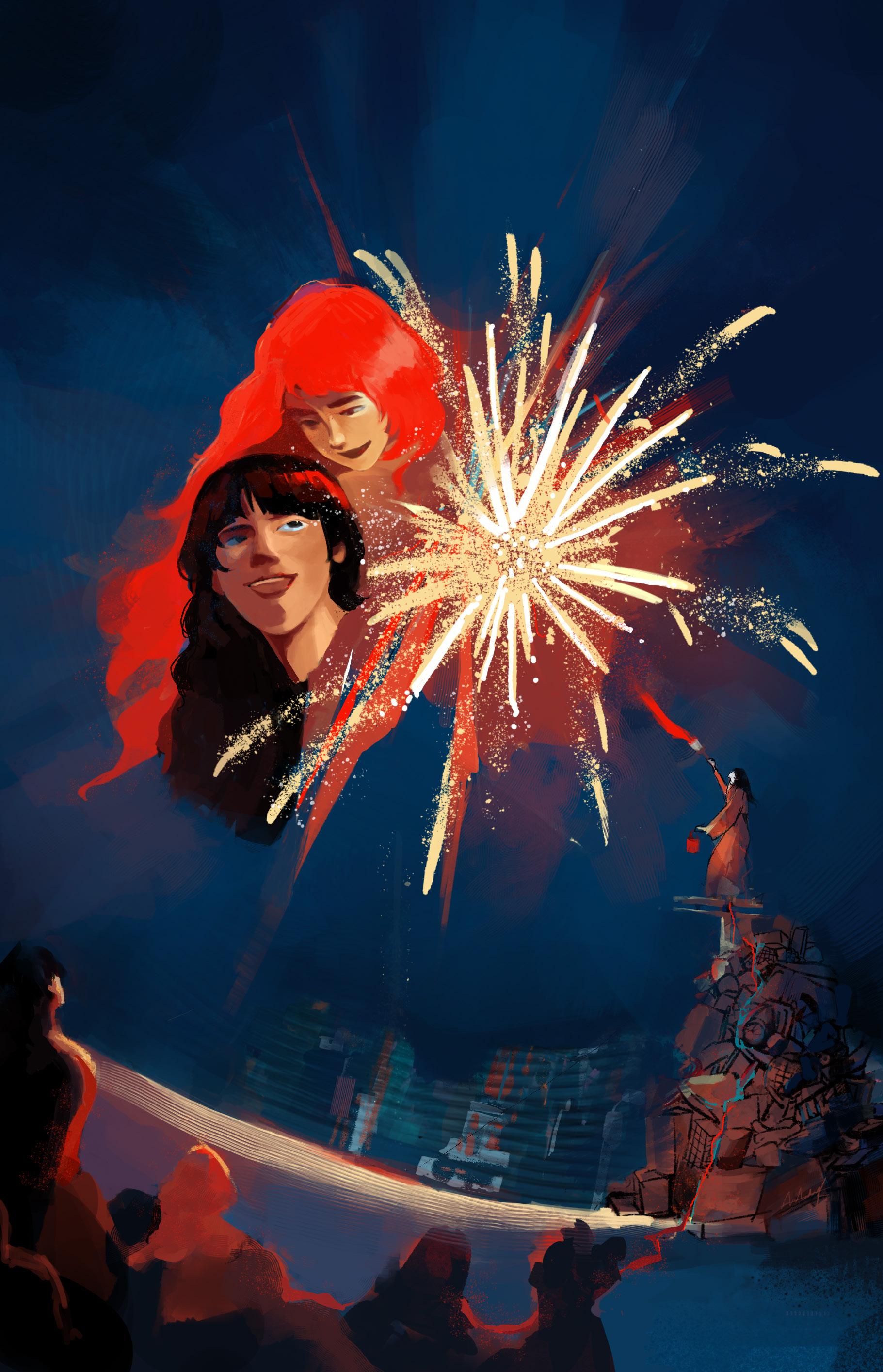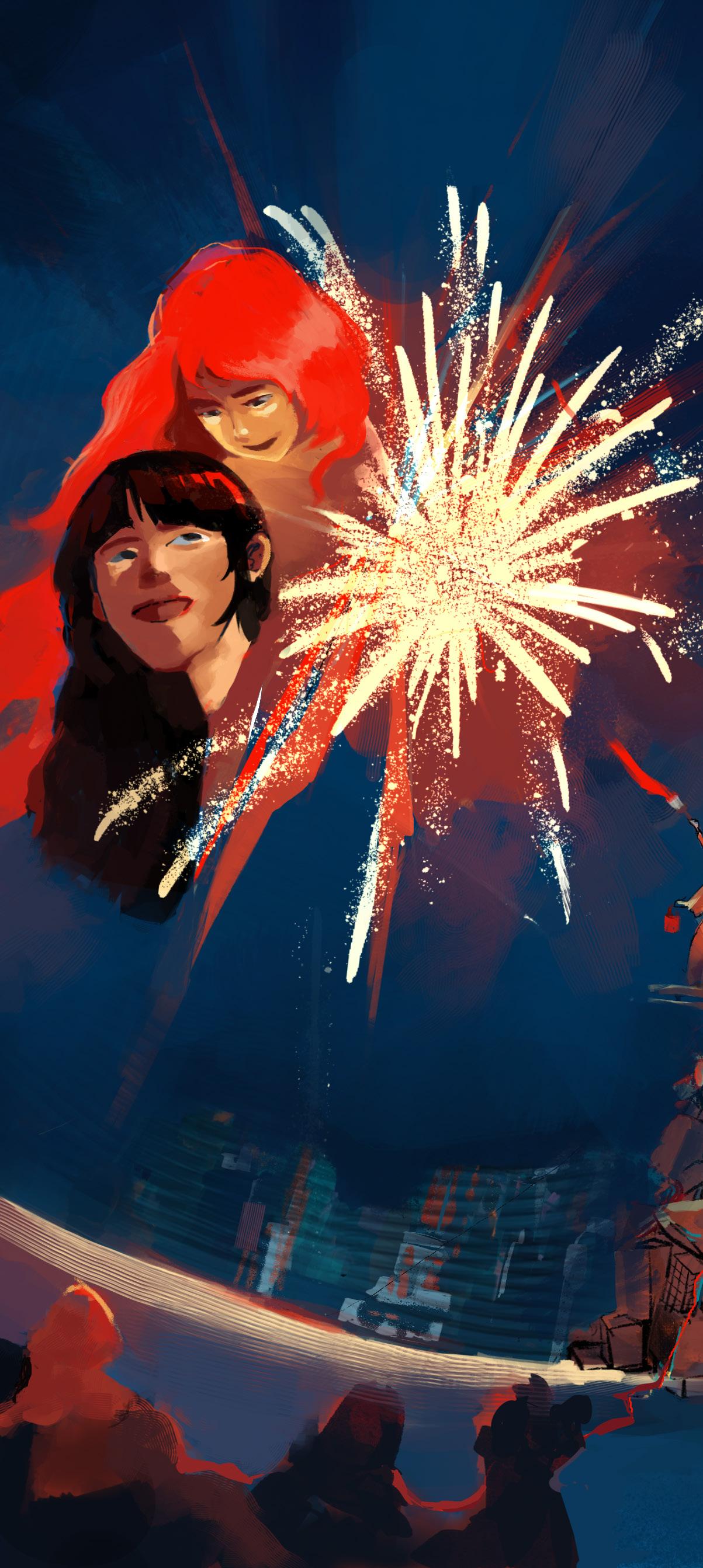 Looking up in awe as the freworks exploded one by one, you stared at the sky from the moment the frst rocket lef the ground to long afer the last ember had faded, watching for each explosion of color across the inky black sky.