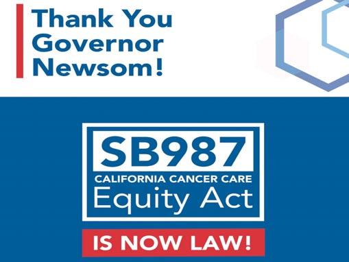 El Gobernador Newsom promulgó la ley de California Cancer Care Equity Fund SB 987 (la Ley de equidad en la atención del cáncer de California). Este proyecto de ley histórico, entra en vigor el 1 de enero de 2023, amplía el acceso a la atención oncológica especializada para los pacientes de Medi-Cal, que representan un tercio de la población en California.