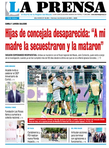 TALCA. Incertidumbre, dolor y un gran malestar, por sentir que la búsqueda de su mamá en los primeros días no fue el adecuado, dejó en evidencia, Javiera Gallegos, una de las hijas de la concejala desaparecida en Villa Alegre, María Ignacia González. Ya se cumplen casi tres meses que se desconoce su paradero, sin tener respuestas claras sobre lo que le ocurrió, motivo por