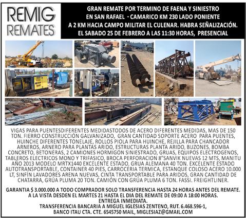 - SAN CLEMENTE: Venta de “Sitios Industriales”. Acceso ruta Internacional, en atractivo sector, proyecto en desarrollo, lanzamiento se informará oportunamente “Solo reales interesados”