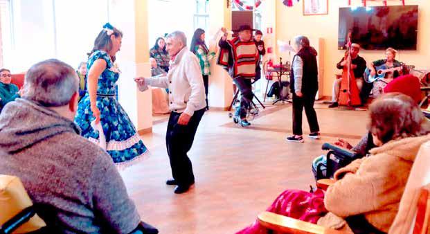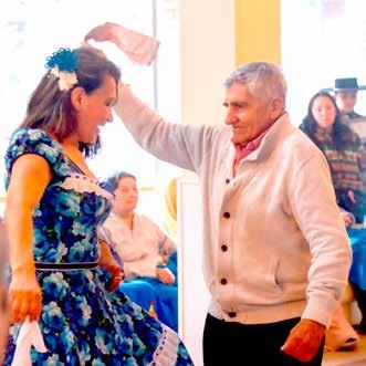 llevó a los abuelitos a un viaje de recuerdos y sentimientos. A su actuación se sumaron las melodías de Voces del Mar y la impecable muestra de los campeones comunales de cueca, Joaquín Díaz e Isabel Espinoza, quienes llenaron de ritmo y alegría el salón del hogar. Para muchos residentes, la cueca significó reencontrarse con su propia historia, uno de ellos expresó emocionado. “Yo bailaba