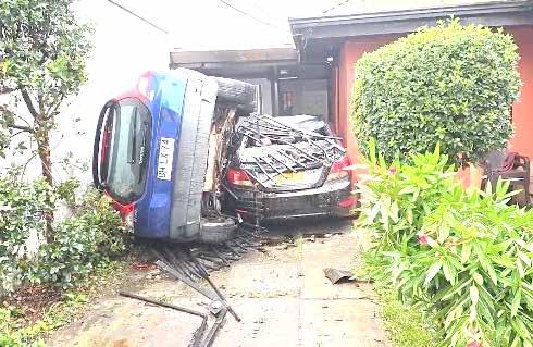 Vehículo destruyó reja de vivienda además de dañar a colectivo | P 11