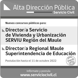 EXTRACTO Ante 4° Juzga do de Letras de Talca por videoconferencia mediante la plataforma Zoom, a tra vés del link . https://zoom. us/j/93899163571?pwd=a TdicmY1a25kV25RYmh3 Vmlpbyt4QT09 ID de reu nión: 938 9916 3571 Códi go de acceso: 663815 el 11 de octubre de 2022, a las 12:00 hrs. se rematará la Parcela número Treinta del Proyecto de Parcelación Casas Viejas, de la comu na de Rio Claro, provincia de Talca, de una superficie aproximada de diez como diez hectáreas. El título de dominio es la inscripción de fojas 10.006 N° 9.758 del año 2017 del Registro de Propiedad del Conser vador de Bienes Raíces de Talca. Se incluyen los dere chos de aprovechamiento de aguas que sirven para el regadío, consistentes en dos coma cincuenta y cinco acciones del Canal Cumpeo, que se encuen tran inscritos a fojas 1216 N° 941 del Registro de Pro piedad de Aguas del Con servador de Bienes Raíces de Talca, correspondiente al año 2017. Mínimo de las posturas $120.000.000.