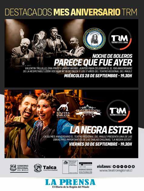 ble”, señaló Valenzuela. El artista aprovechó de agradecer el apoyo que le ha prestado a la banda la Municipalidad de Curicó, a través de la Corporación Cultural y el Teatro Provincial.