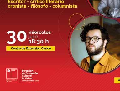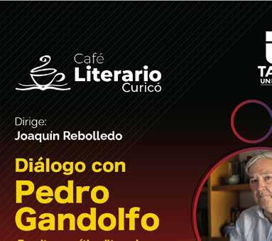 Café Literario. Un nuevo e interesante Café Literario, se realizará en el Centro de Extensión de la Universidad de Talca en Curicó. En esta oportunidad, los asistentes podrán disfrutar el Diálogo con Pedro Gandolfo, con la conducción de Joaquín Rebolledo Aladro, quien conversará con el destacado escritor, crítico literario, cronista, filósofo, columnista y fundador de la fundación “Memorias del Maule”. La actividad está programada para el miércoles 30 de julio, a las 18:30 horas, en dependencias del Centro de Extensión Curicó.