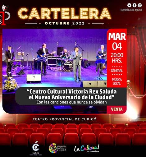 dad de Curicó, actividad a rea lizarse en el Teatro Provincial y que tendrá entrada total mente gratuita y disponibles en boleterías del teatro, con tando con la organización del Centro Cultural Victoria Rex y la Corporación Cultural de la