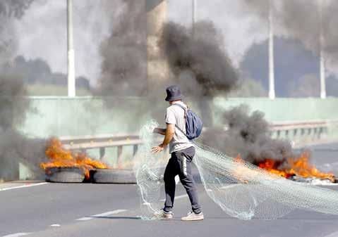 una reunión convocada por alguien y eso es parte de lo que hay que investigar”. “Cuando se quema un vehículo con personas en su interior, claro que se ponen en riesgo vidas”, dijo Espinoza Las querellas a las que se exponen los involucrados -trabajadores de la pesca artesanal y oriundos de Parral y Constitución- son por delitos de incendio, bloqueo de carreteras y maltrato de obra y lesiones de carabineros. El delegado presidencial Humberto Aqueveque fue enfático en señalar que “la forma de manifestarse que impide la libertad de movimiento de otras personas no es entendible y por ello debieron actuar fuerzas policiales. El derecho a libre tránsito es primordial. Acá riesgos a la salud de nuestros carabineros, hubo agresiones que están en la investigación del proceso, donde se da cuenta de un nivel de agresividad que no habíamos visto, nunca había visto este tipo de actitudes, de acciones, lo rápido y el nivel de violencia nos dejó perplejos y por cierto fue necesario que Carabineros en resguardo al orden público hiciera su trabajo, generando copamiento y el trabajo de habilitar las pistas que se encontraron cerradas por largas horas”.