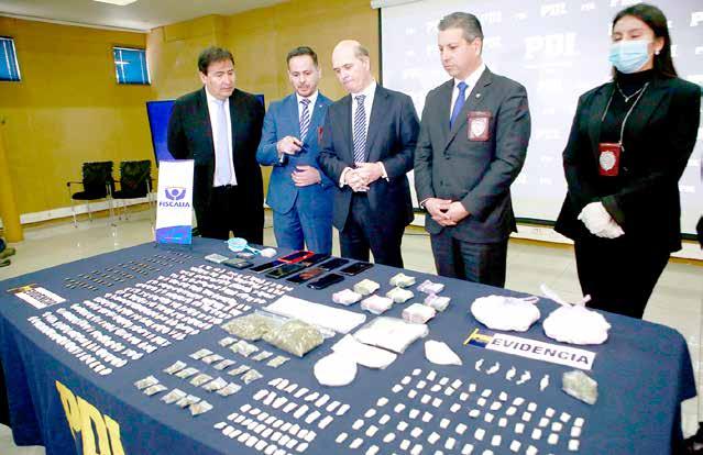 TALCA. En el salón del cuartel de la PDI, ubicado en Talca, el jefe de la región policial, Luis Salazar, junto al fiscal regional, Julio Contardo y el fiscal jefe de la Unidad de Análisis Criminal y Alta Complejidad (Unaac) del Maule, Francisco Soto, entregaron detalles de importante golpe al microtráfico para el Maule, realizado en el sector Sur Poniente de Curicó, donde con el trabajo conjunto de Brigada de Homicidios, la Brigada Antinarcótico y Contra el Crimen Organizado, la Fiscalía ECOH y de Análisis Criminal de Unaac, se detuvo a 16 personas y se incautó 12 mil dosis avaluadas en 12 millones de pesos. Salazar explicó que “acá se hizo un trabajo colaborativo… donde se investigó los delitos de tráfico de droga en pequeñas cantidades, infracción a la Ley de Armas, dis-