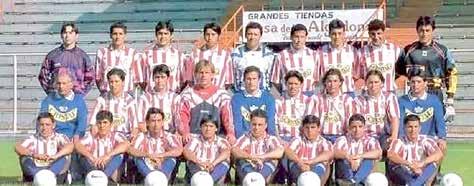 Deportes Linares en Segunda División 1998. Parados de izquierda a derecha: Julio López, Álvaro Pérez, Luis Durán, Miguel Sepúlveda, Walter Mella, Jaime Silva, Alejandro Bernal, Nibaldo Rubio y José Letelier. Al medio: Auxiliar, Marcelo Rojas, Jaime Torres, Horaco Rivas (Director Técnico), Domingo Torres (Preparador Físico), David Reyes, Christian Riffo, Ángelo Espinoza y auxiliar. Abajo de izquierda a derecha: Jaime Gutiérrez, Juan Retamal, José Marín, Cristián Molina, Diego Gavazzi, Luis Pinochet, Walter Obregón y Lester D’wingulo.
