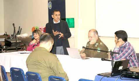 Javier Muñoz se refirió a la seguri dad, tema que se ha venido traba jando en conjunto con Carabineros a través de las Patrullas Mixtas, además de las instancias para fi nanciar cámaras de teleprotección a través del Gobierno Regional. Asimismo, el delegado presidencial provincial, José Patricio Correa, mencionó el aumento presupuesta rio para el ámbito de la seguridad pública, asegurando que “la Subdere pone una carpeta de pro