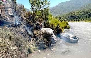 Debido al incendio del vehículo, las llamas se propagaron por la ladera del río, siendo controladas en el momento por los mismos voluntarios bomberiles.