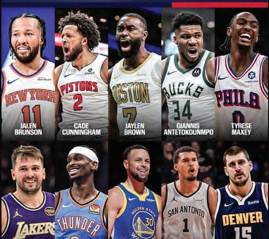 In the East, the starters include Cade Cunningham of the Detroit Pistons; Jaylen Brown of the Boston Celtics; and Jalen Brunson of the New York Knicks. They are joined by Greek Giannis Antetokounmpo of the Milwaukee Bucks and Tyrese Maxey of the Philadelphia 76ers.