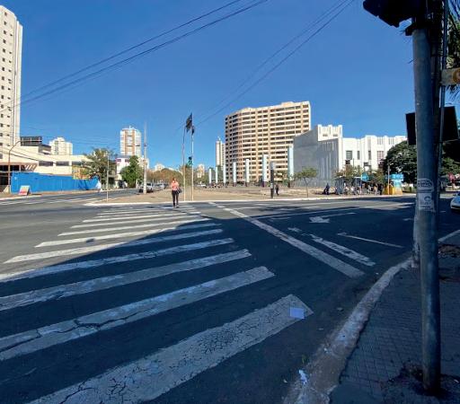 A estrutura dessas avenidas, largas e com grandes dimensões longitudinais, caracterizam o tipo de percurso apropriado para o uxo de automóveis, o que reduz o espaço de locomoção livre e segura para o pedestre, que se vê refém de um sistema viário que não o favorece. Há uma variação na largura das calçadas; onde estão grandes avenidas, há calçadas mais largas, com cerca de 5m de largura, e onde estão ruas com a caixa mais estreita, notam-se calçadas um pouco menores.