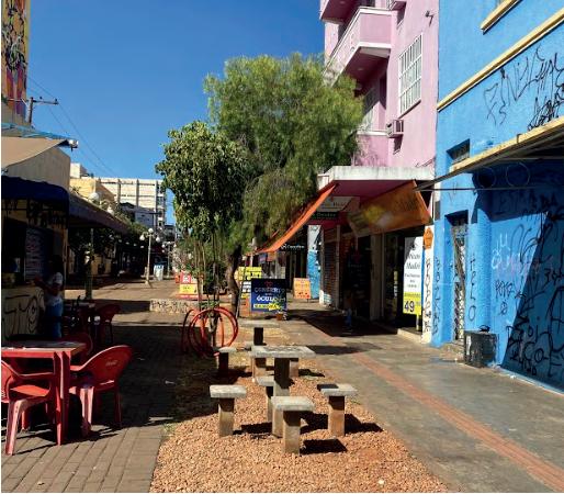 - Local de passagem restrito a pedestres através desse trecho da rua 8, com várias possibilidades de usos e diversidade de atividades que podem ser aplicadas, como feiras diurnas e noturnas, eventos culturais, etc. O mesmo se aplica ao espaço dos becos, mais frequentados pelos públicos jovem e infantil.