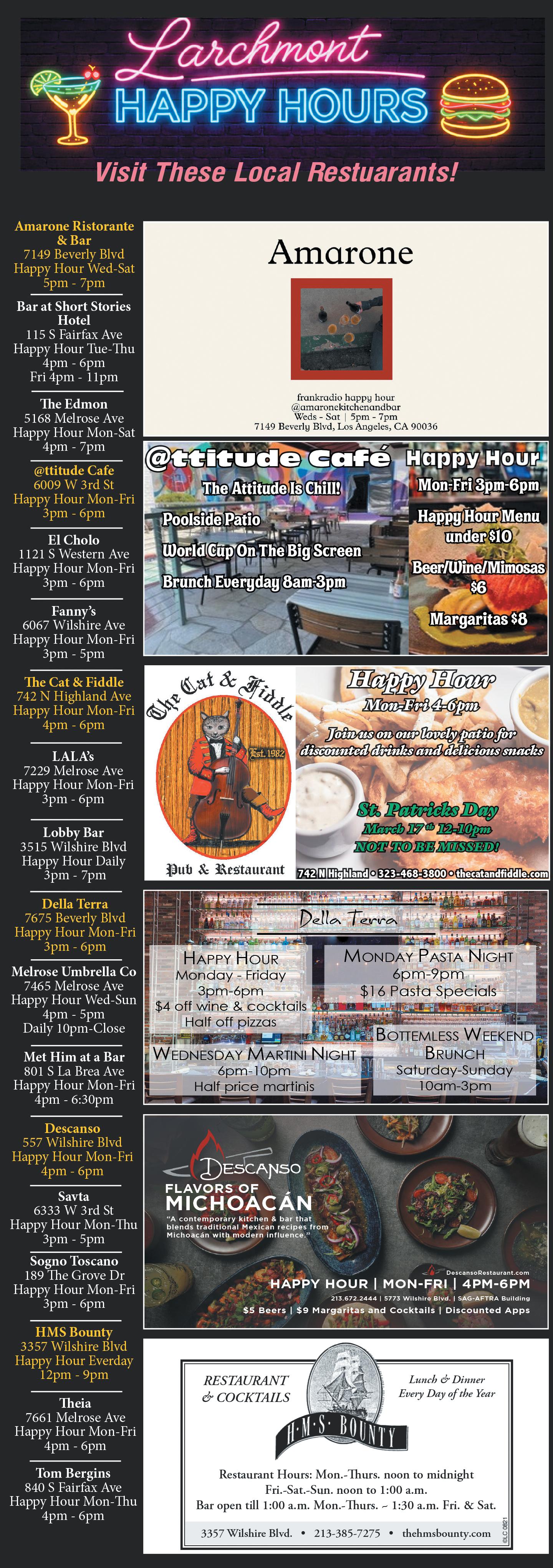 Local themed pubs and eateries include: Guelaguetza, a Oaxacan restaurant in Koreatown; Mexican food at Mariscos Marias, on South Vermont and in Culver City, and S.O.L, an Aussie cafe on Melrose.