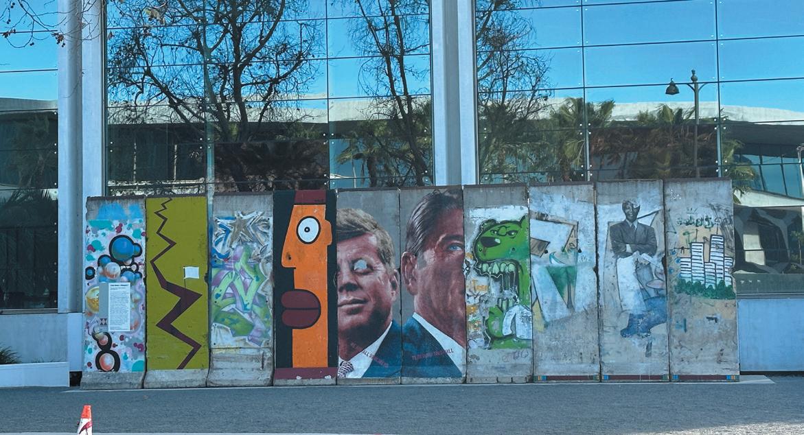 Wall Along Wilshire sits on the 5900 block of the busy thoroughfare. It was installed in 2009 as a public art and history piece to mark the 20th anniversary of the Wall’s fall. It’s the longest stretch of the Berlin Wall on public dis play outside of Germany, and was the brainchild of Justin Jampol, founder and execu tive director of Culver City’s