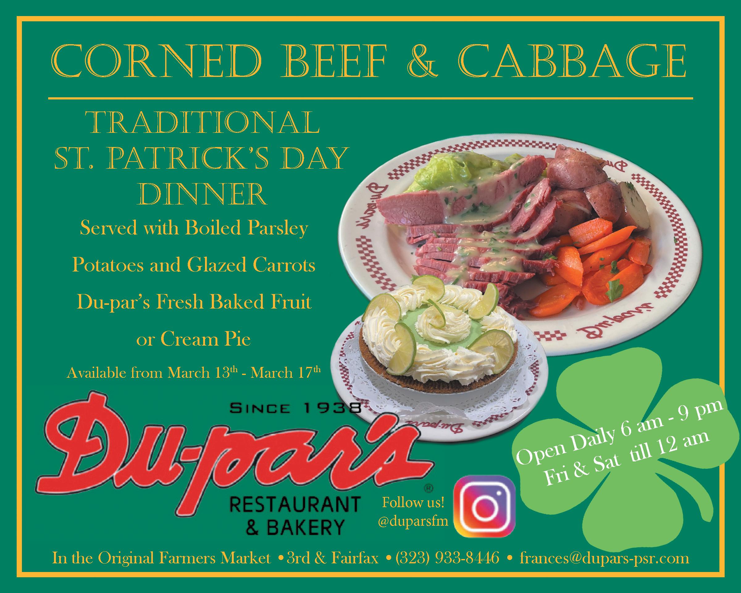 Family friendly St. Patrick’s Day can be found at the Original Farmers Market with Glen the bagpiper piping from 12:30 p.m. to 3:30 p.m. Magee’s Kitchen has your corned beef and E.B.’s Beer and Wine Bar your green beer.