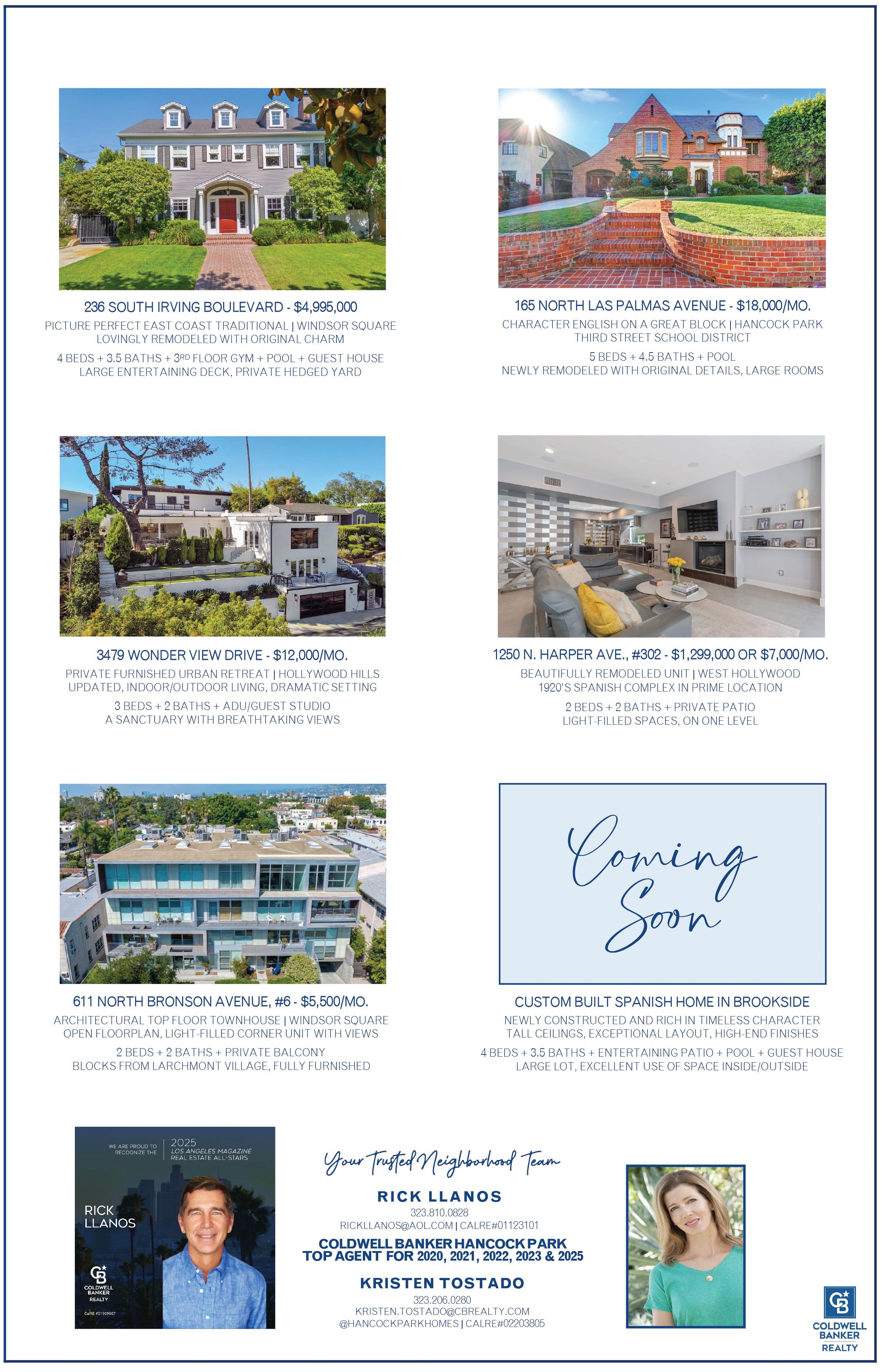 HANCOCK PARK • WINDSOR SQUARE • FREMONT PLACE • GREATER WILSHIRE • MIRACLE MILE • PARK LA BREA • LARCHMONT