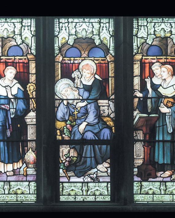 The earliest depictions of St. Patrick draped him in blue, not green. A French 13th-century illumination from “Legenda Aurea” in the collection of the Huntington Library, Art Collections, and Botanical Gardens depicts him in a flowing blue cassock. Ireland’s Armagh Roman Catholic Cathedral’s stained glass shows St. Bernignus placing flowers on a sleeping blue-robed St. Patrick. He’s also wearing blue in a stained glass portrait above the altar in Northern Island’s Saul Church, built in 1932 on the site where St. Patrick established the first Christian