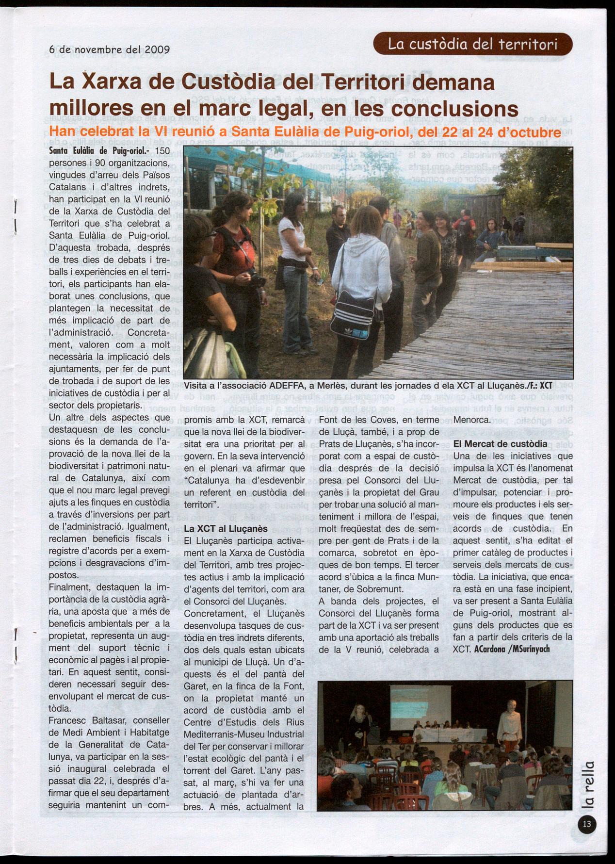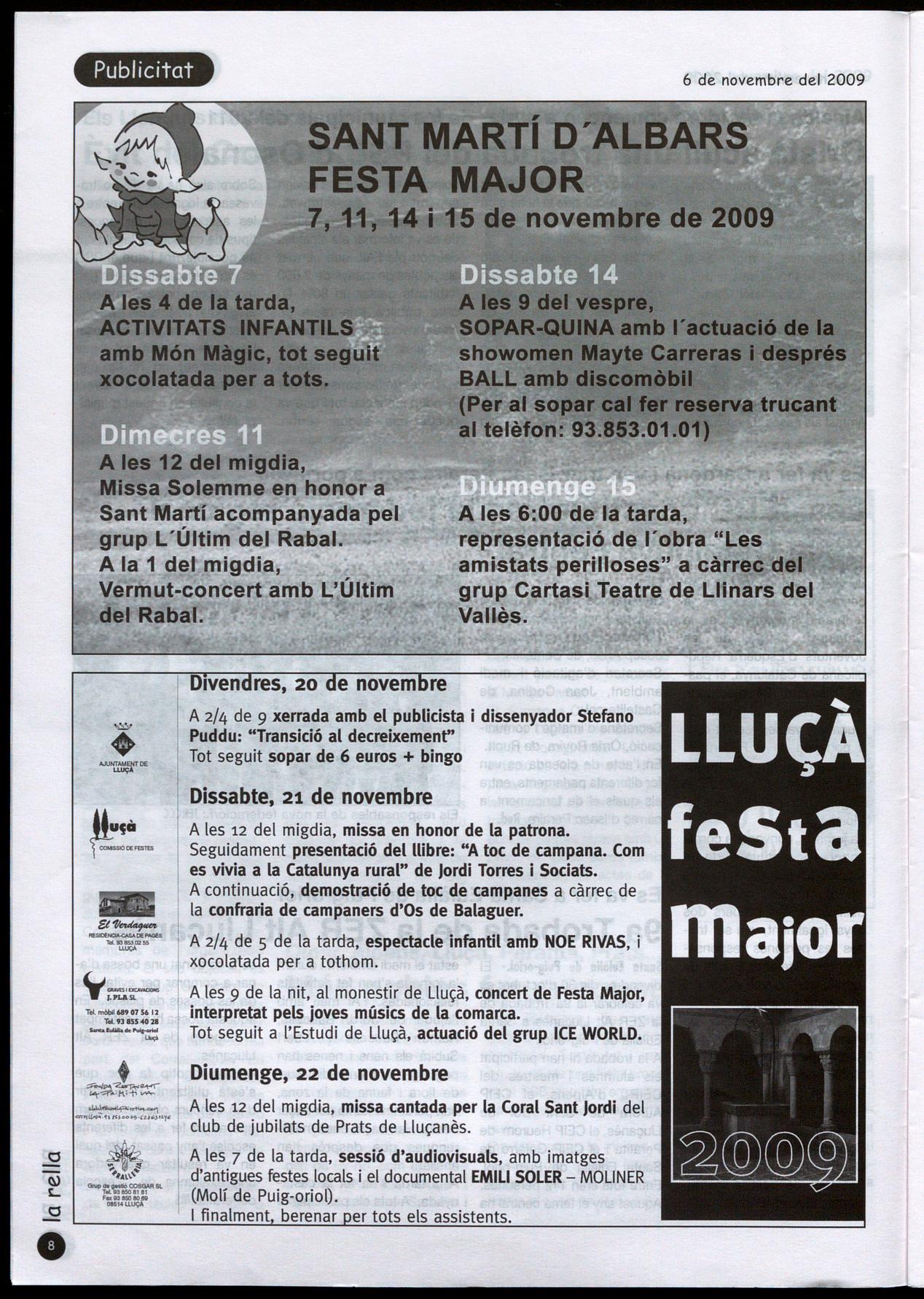 Teresa Ribera, Caputxetes de tots colors. També es comenta la renovació del web del municipi s'hi anuncien les principals activitats previstes, a l'agenda. Igualment, s'hi anuncia, per al dia 7 de novembre, la presentació dels resultats de l'inventari del patrimoni elaborat mesos enrere a través de l'a-