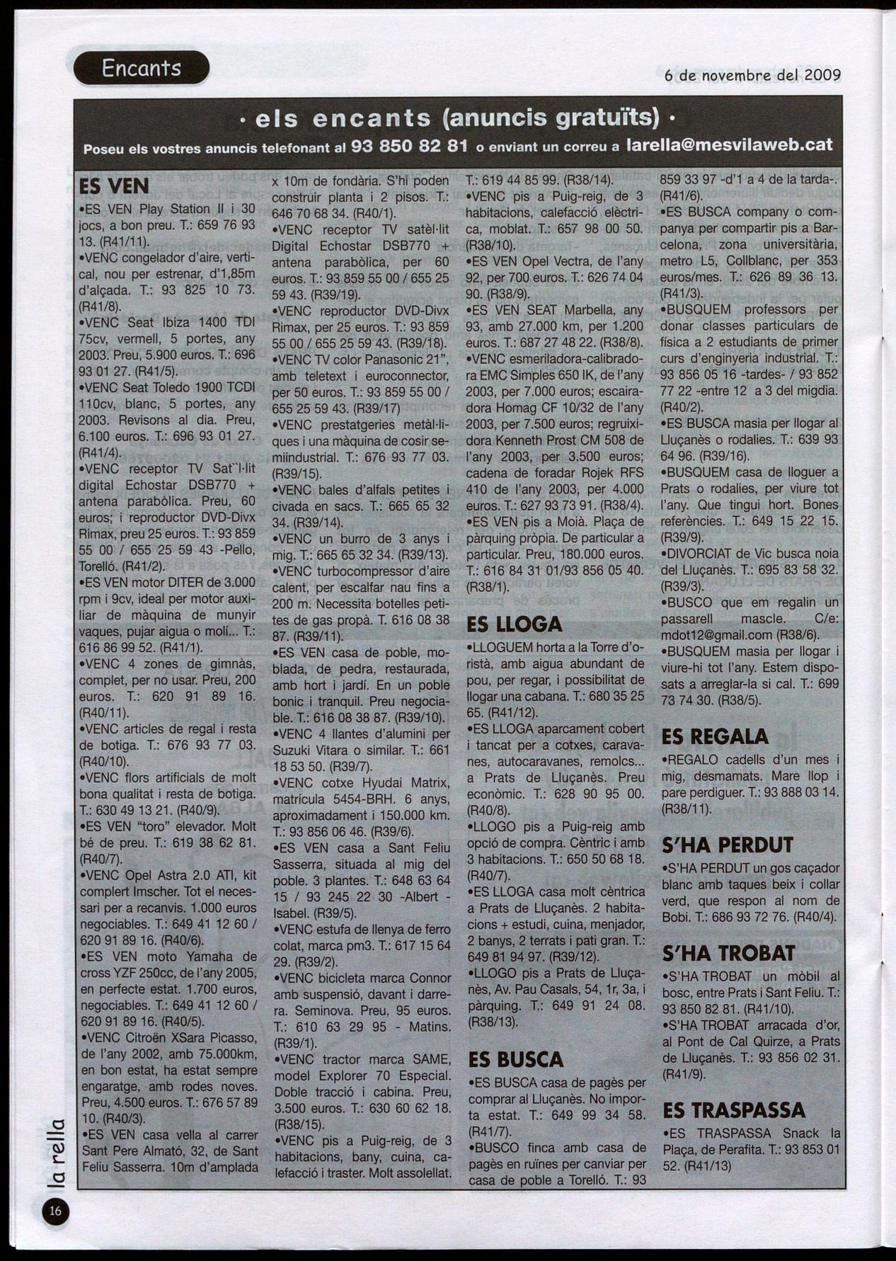 Poseu els vostres anuncis telefonant al 93 850 82 81 o enviant un correu a larella@mesvilaweb.cat