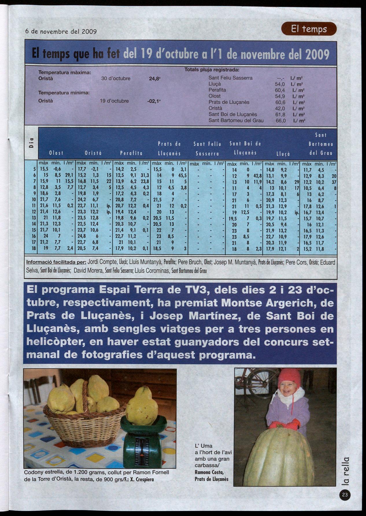 Prats de Uu�anès.- El 25 d'octubre la Unió de Botiguers de Prats va organitzar el quart concurs de bolets. A més de premiar a la millor cistella, al bolet de més pes el bolet més estrany, també s'hi va afegir un concurs de fotografia. Els premiats van ser Toni Escrigas per la cistella més ben presentada; Anna Fornells pel bolet de més pes que va se run cep de 385g;