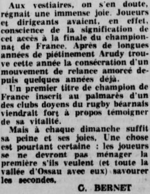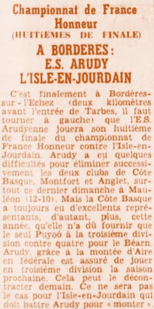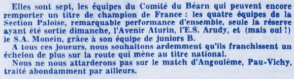 Rugby 1969-1970 / 50 ans du Championnat du Béarn