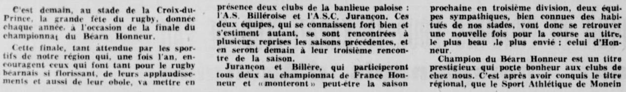 Rugby 1970-1971 / 50 ans du Championnat du Béarn