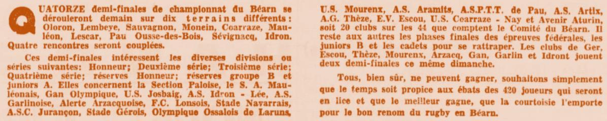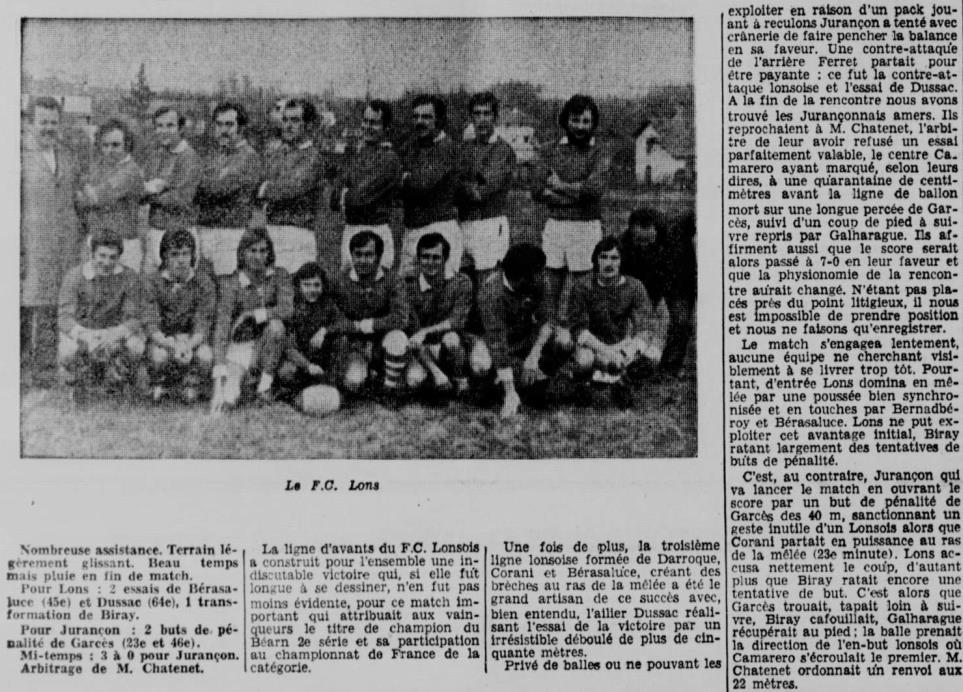 Rugby 1972-1973 / 50 ans du Championnat du Béarn