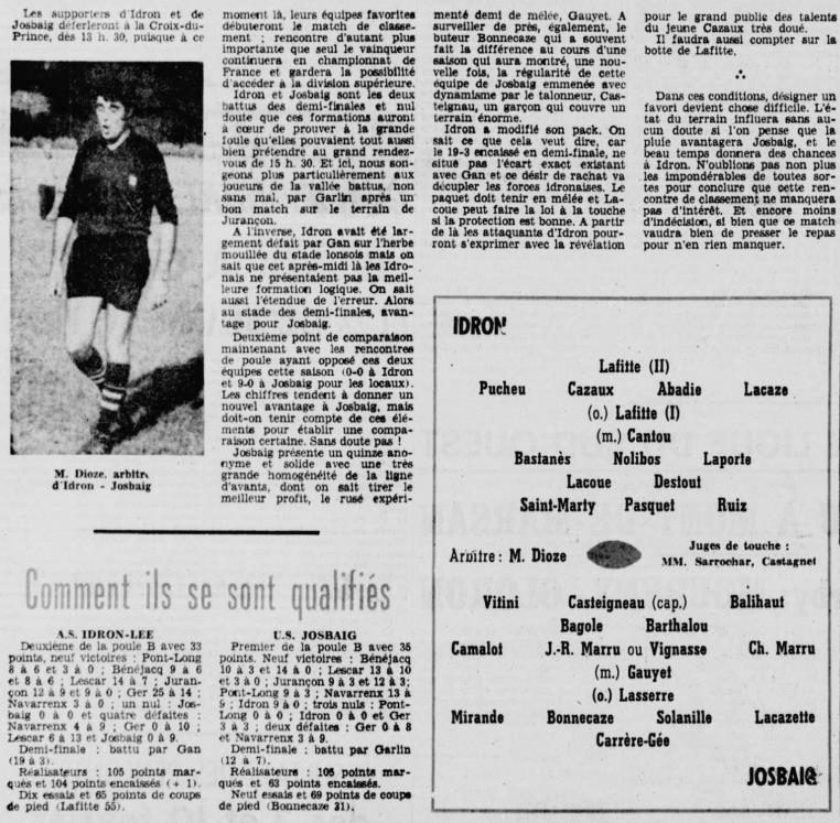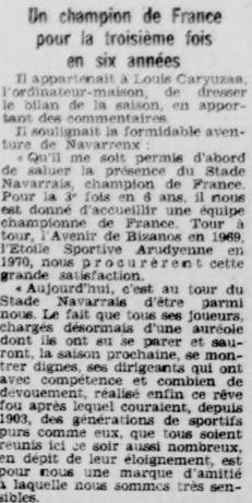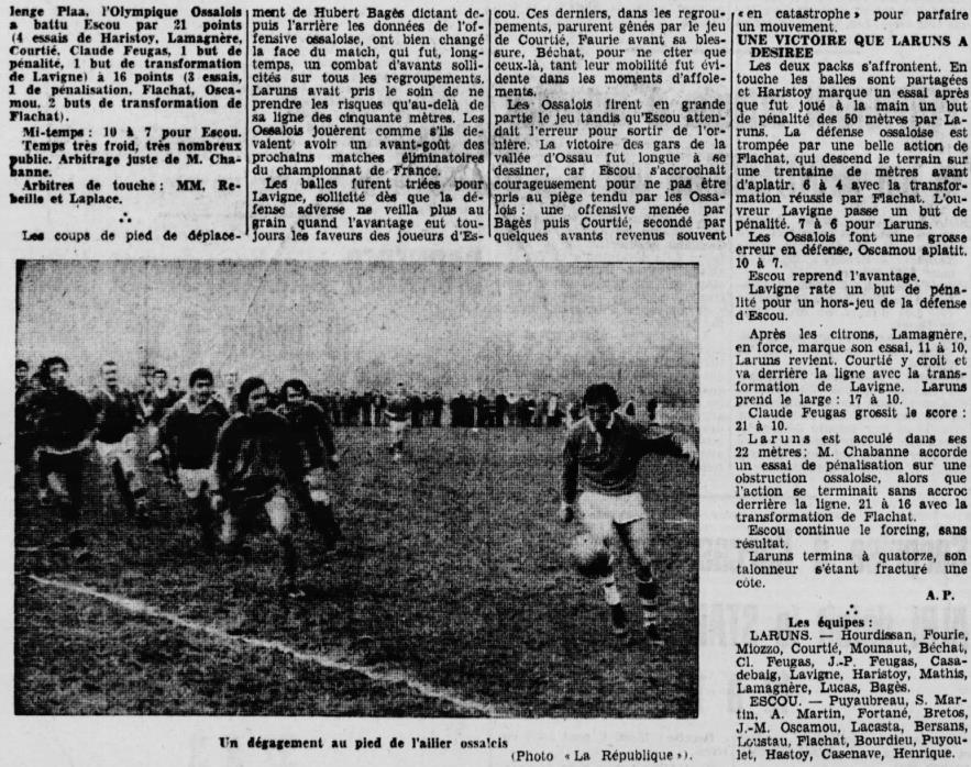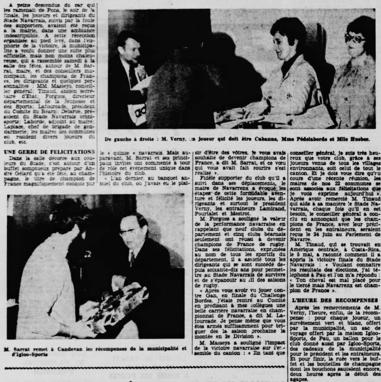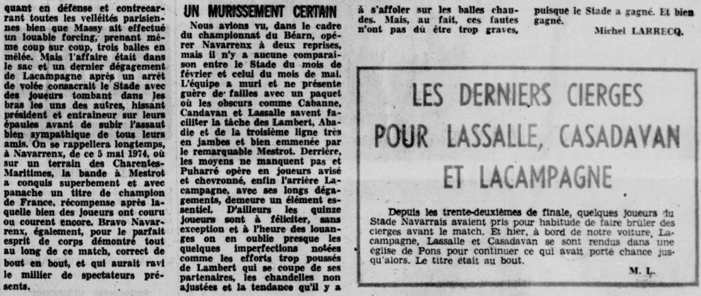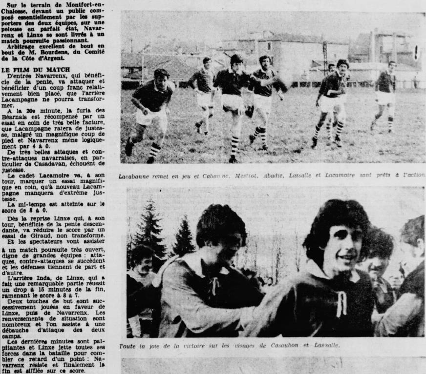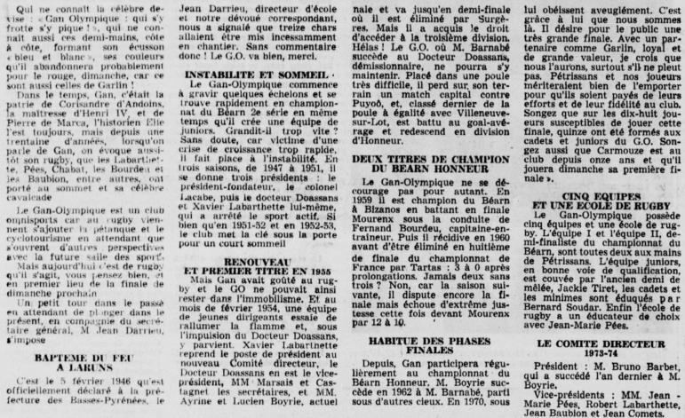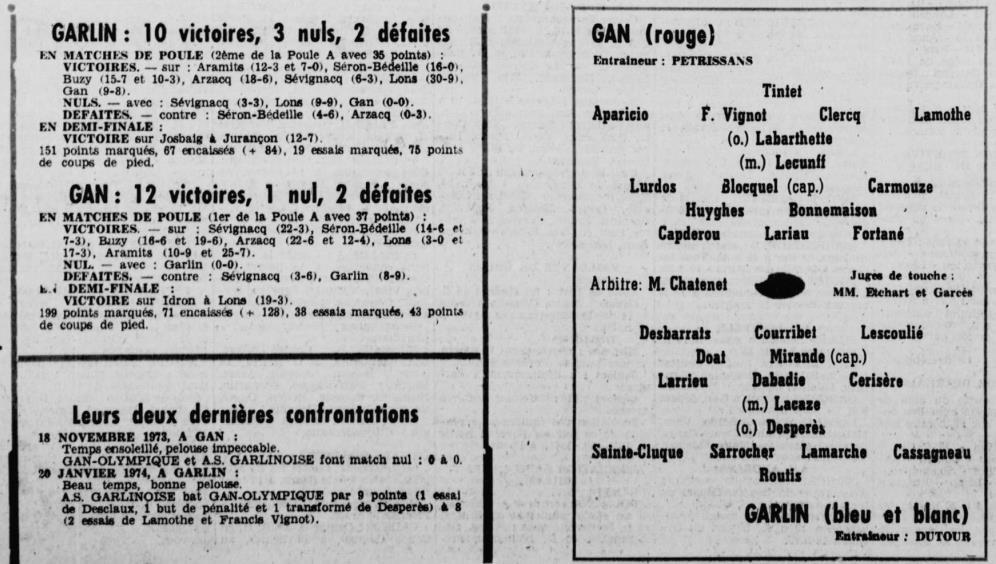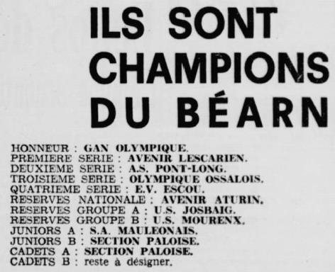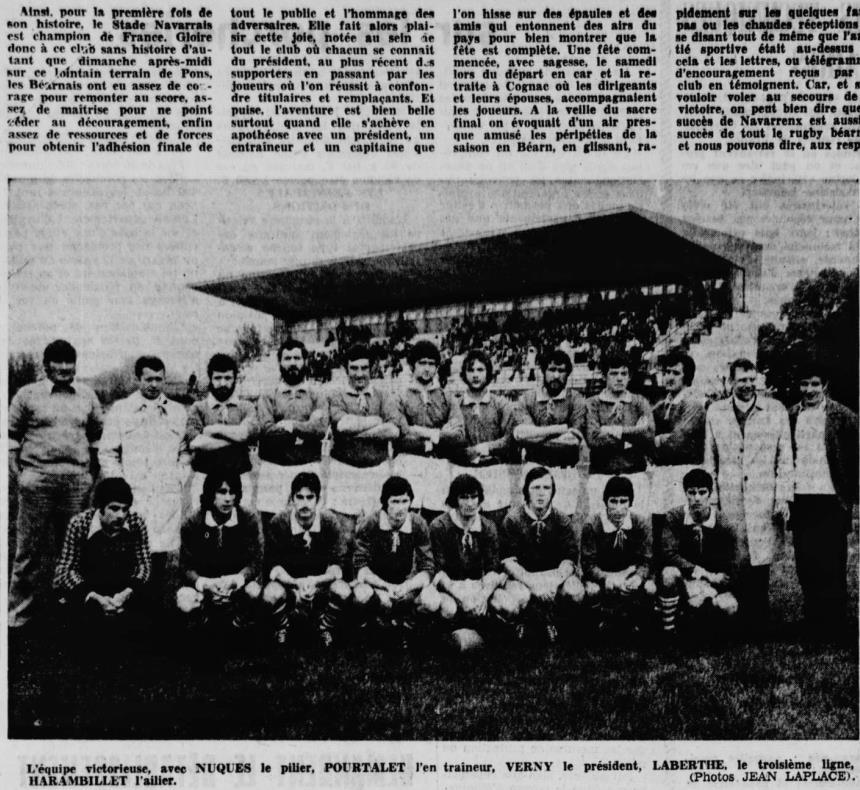 Rugby 1973-1974 / 50 ans du Championnat du Béarn