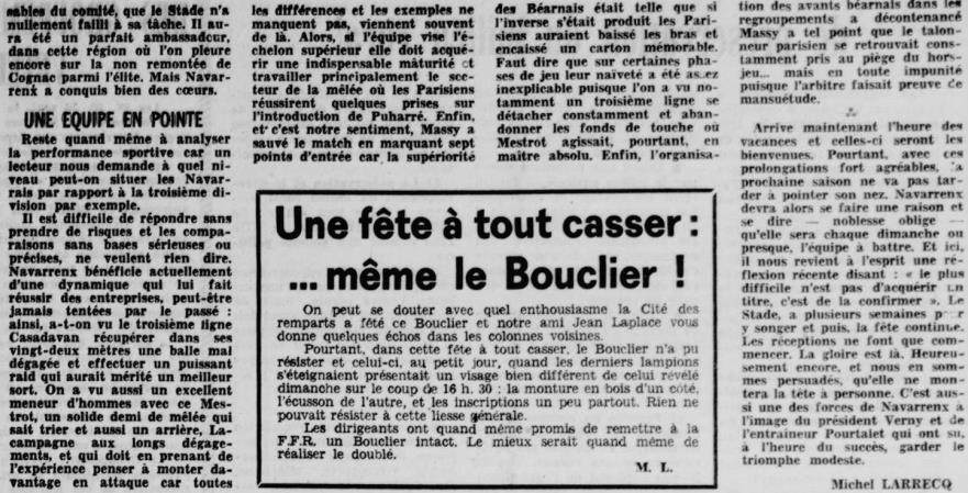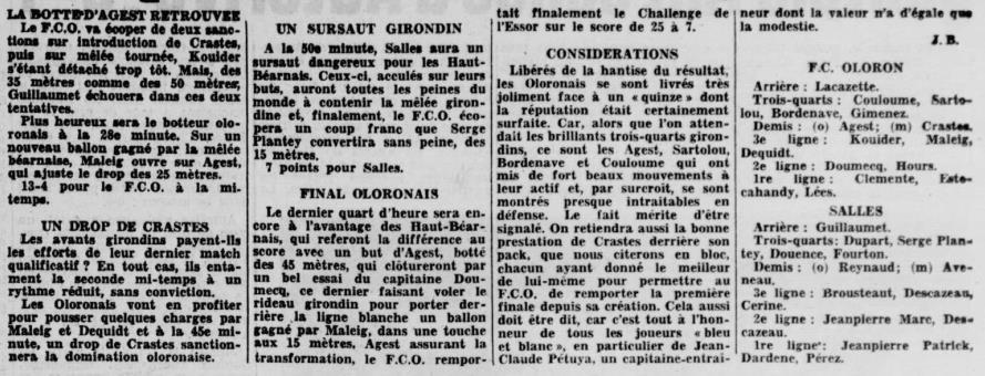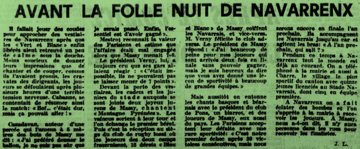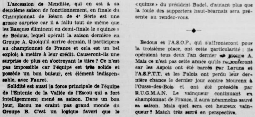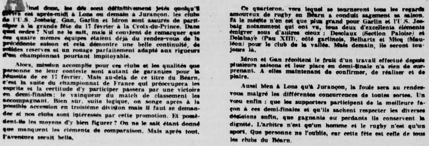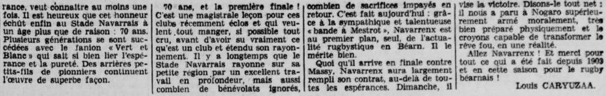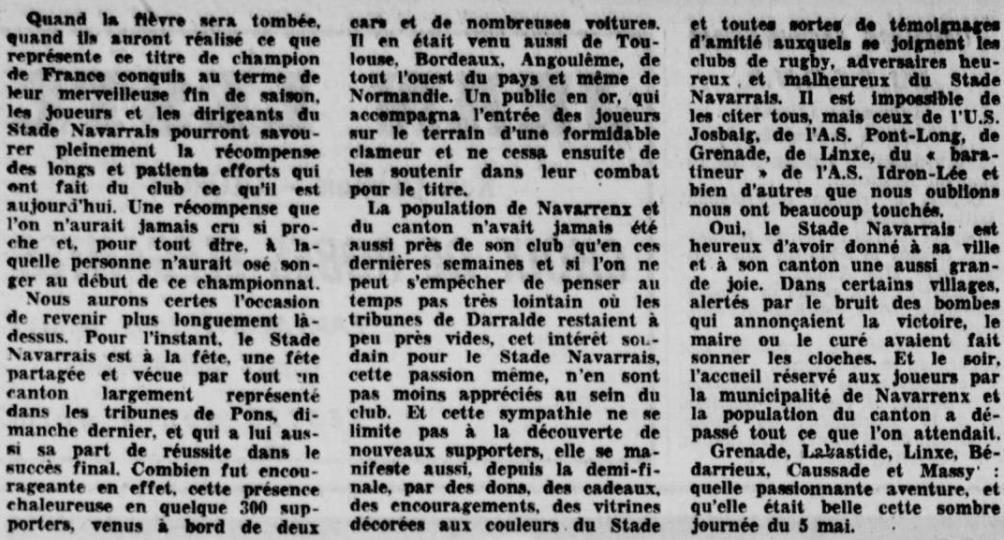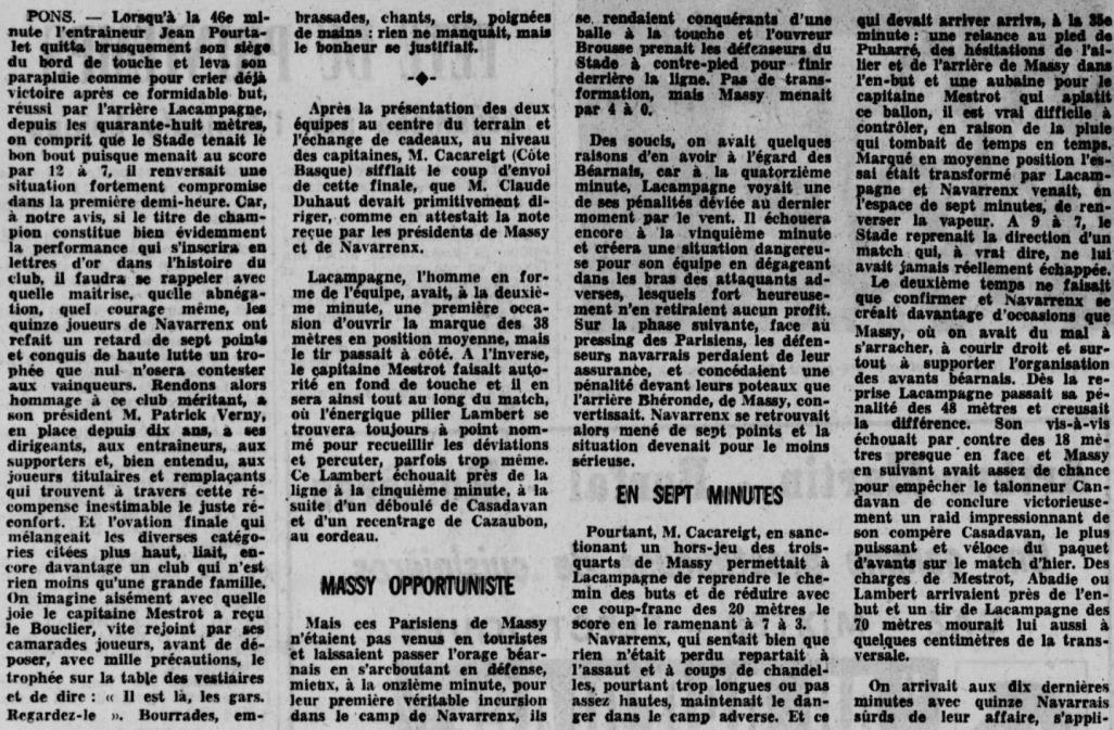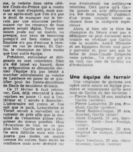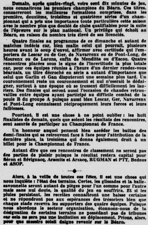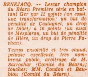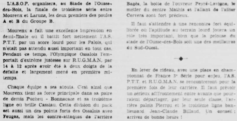 Rugby 1973-1974 / 50 ans du Championnat du Béarn