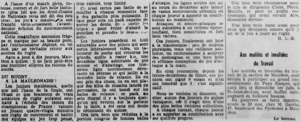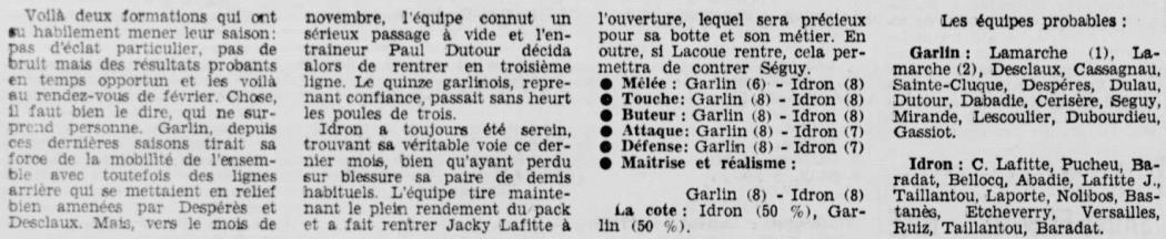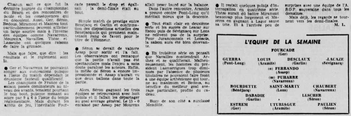 Rugby 1974-1975 / 50 ans du Championnat du Béarn